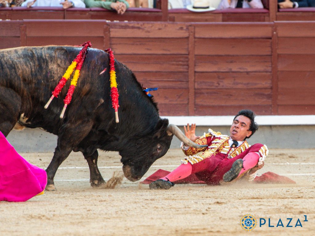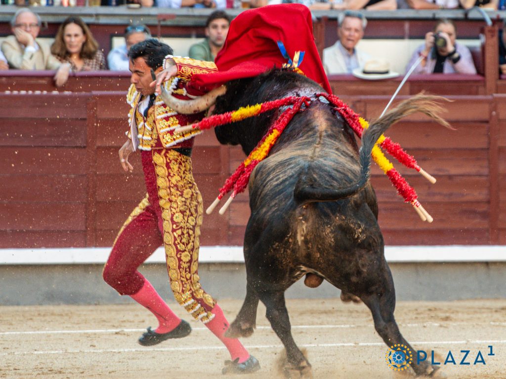 Ese primer astado del hierro de Dolores Aguirre que le correspondió le arrolló de un modo terrible al inicio de la faena de muleta, haciendo presa en lo más delicado de la taleguilla. Cada pase fue un triunfo y el estoconazo, de ley.