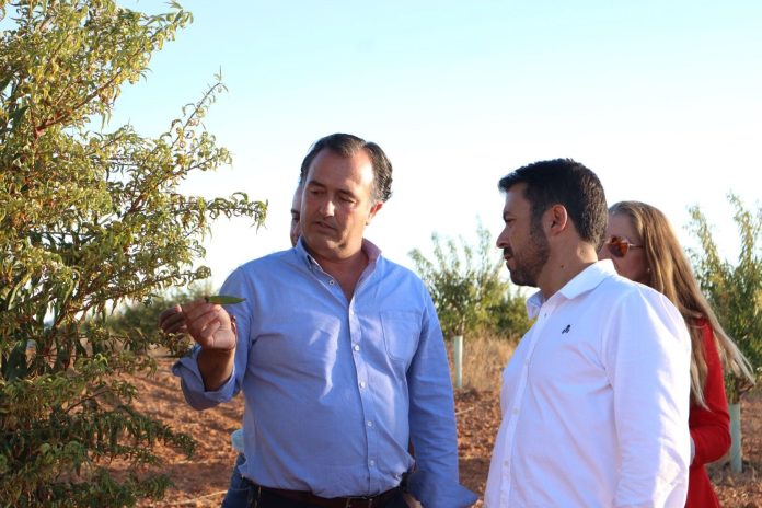 El presidente del Grupo Parlamentario Vox en las Cortes de Castilla-La Mancha, David Moreno, ha visitado varias explotaciones de almendros en la comarca de Cuenca, junto con el diputado regional, Iván Sánchez, donde ambos se han reunido con agricultores que le han expresado su preocupación por los graves daños causados por la plaga del gusano cabezudo, especialmente en cultivos de secano.