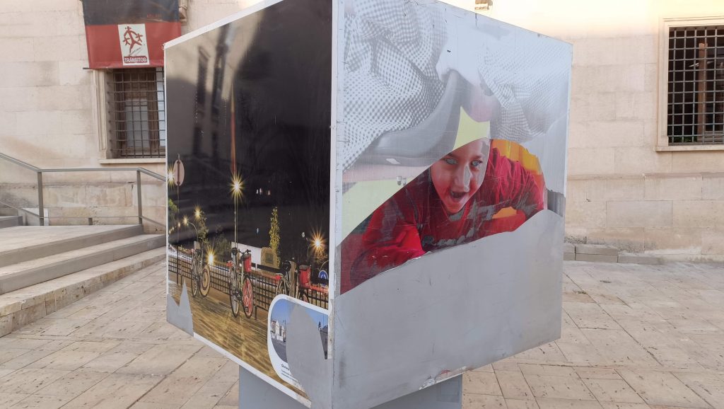Hay que remontarse a septiembre de 2011, para llegar al origen de todo esto. Fue entonces, en la Plaza del Jardinillo, donde Antonio Román inauguraba esta muestra de imágenes, que se pretendía artística y didáctica. Para lo primero, se contó con el buen trabajo fotográfico de alumnos de la Escuela de Arte; para lo segundo, la literatura que las acompaña mantenía un tono de brioso entusiasmo sobre el estado de la ciudad, que según eso era tan magnífico hace una década como se pretende hacer ver que lo es ahora también, en vísperas electorales. Cada cara de cada cubo es un antes y un después de Guadalajara, tras la gestión de la concejalía correspondiente. Incluidos los disciplinados bolardos, de los que entonces se alardeaba y que el actual alcalde, Alberto Rojo, ha prometido eliminar de la faz de esta su ciudad.