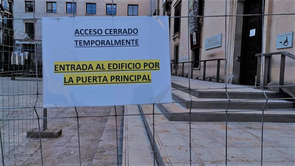 Para los que apuran sus vacaciones fuera de la Alcarria, dejemos constancia de la anécdota más temprana. Incluso en este Domingo de Resurrección muchos se han perdido, por estar ausentes de Guadalajara o por dormir a pierna suelta más de lo debido, el feliz espectáculo del absurdo, digno de Ionesco, entre dos carteles contradictorios, dispuestos a escasos metros uno del otro, en lo que debieran ser entradas al Palacio del Infantado y al Museo de Guadalajara y que, en vez de darte paso al interior, te conducían inevitablemente a una sonrisa desencantada o a una sonora maldición: