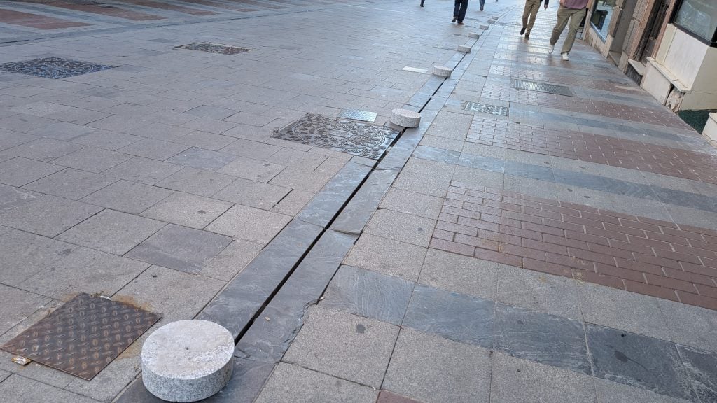 Lo de ahora es, simplemente, intentar devolver a la Calle Mayor un aspecto parecido al original, sin las tapas de hierro que han protegido a los peatones durante varios meses de meter la pata… y el pie donde no debían.