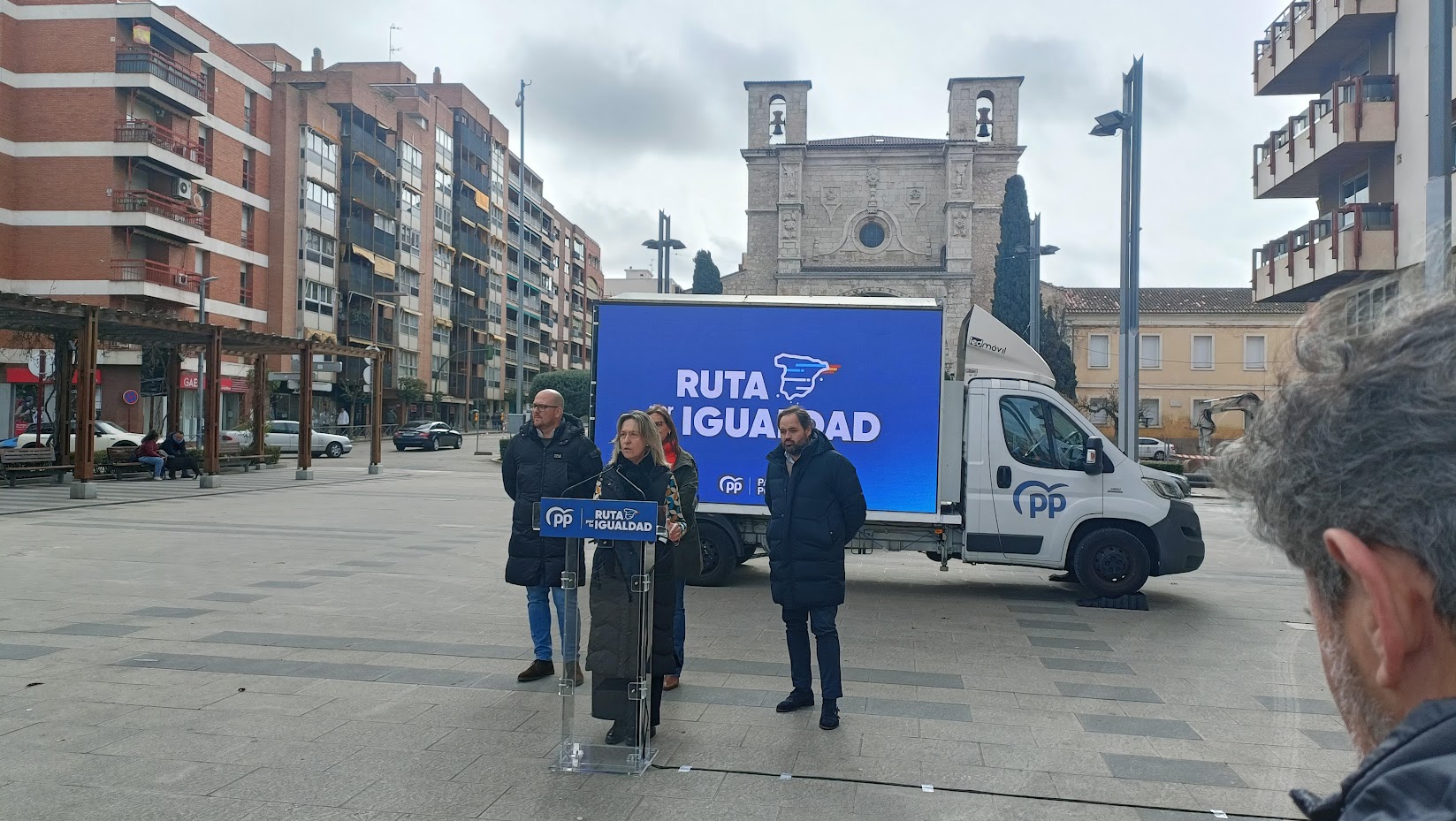 La mañana del domingo, marcada por el viento y el frío, no animaba precisamente a plantarse a pie firme en la Plaza de Santo Domingo. Contra las inclemencias del tiempo y la falta de conocimiento general han tenido que luchar este 25 de febrero los convocantes de un acto del PP, que tenía como principal referencia a Carmen Fúnez, en su condición de vicesecretaria de Organización Territorial en la calle Génova.