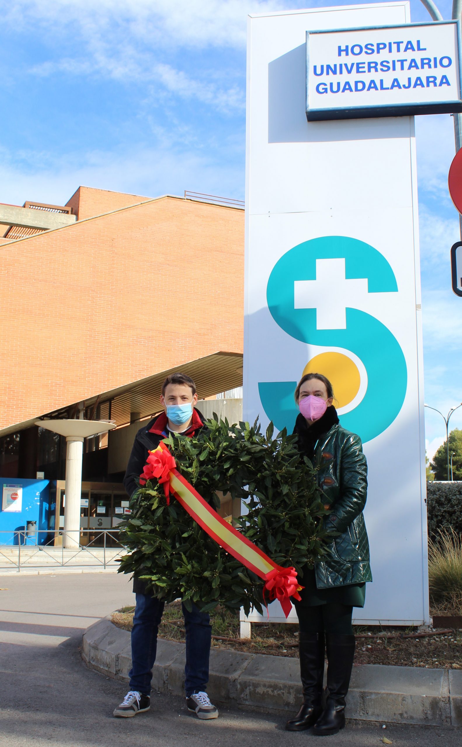 Desde Nuevas Generaciones han homenajeado a los trabajadores sanitarios, depositando una corona de laurel en el Hospital Universitario de Guadalajara “para recordar el trabajo tan duro que han realizado este año y a los que han perdido la vida en ella ayudando y luchando por los demás”, según su responsable provincial.