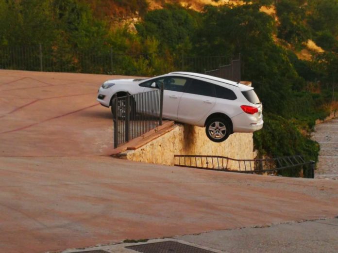 Afortunadamente, no hubo que lamentar daños personales porque todo se originó por un fallo en el freno de mano o por la falta de accionamiento del mismo. Con el coche sin conductor, este echó a andar por la mera ley de la gravedad, hasta dar una lección práctica de equilibrio inestable.