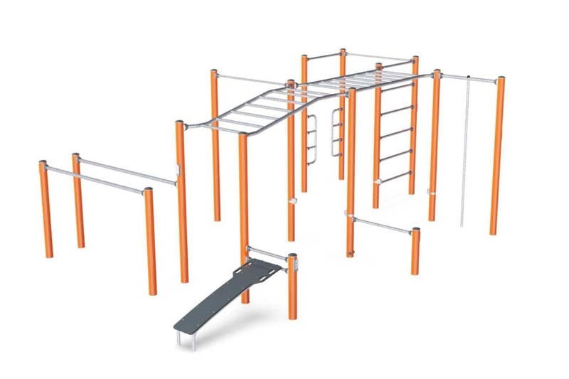Over Under dispone de dos barras para saltar o reptar con el fin de entrenar fuerza, agilidad, coordinación y flexibilidad. Dip Bench es una estructura de barras paralelas, en línea y a baja altura para ejercitar y fortalecer los músculos del pecho, los hombros y los brazos.