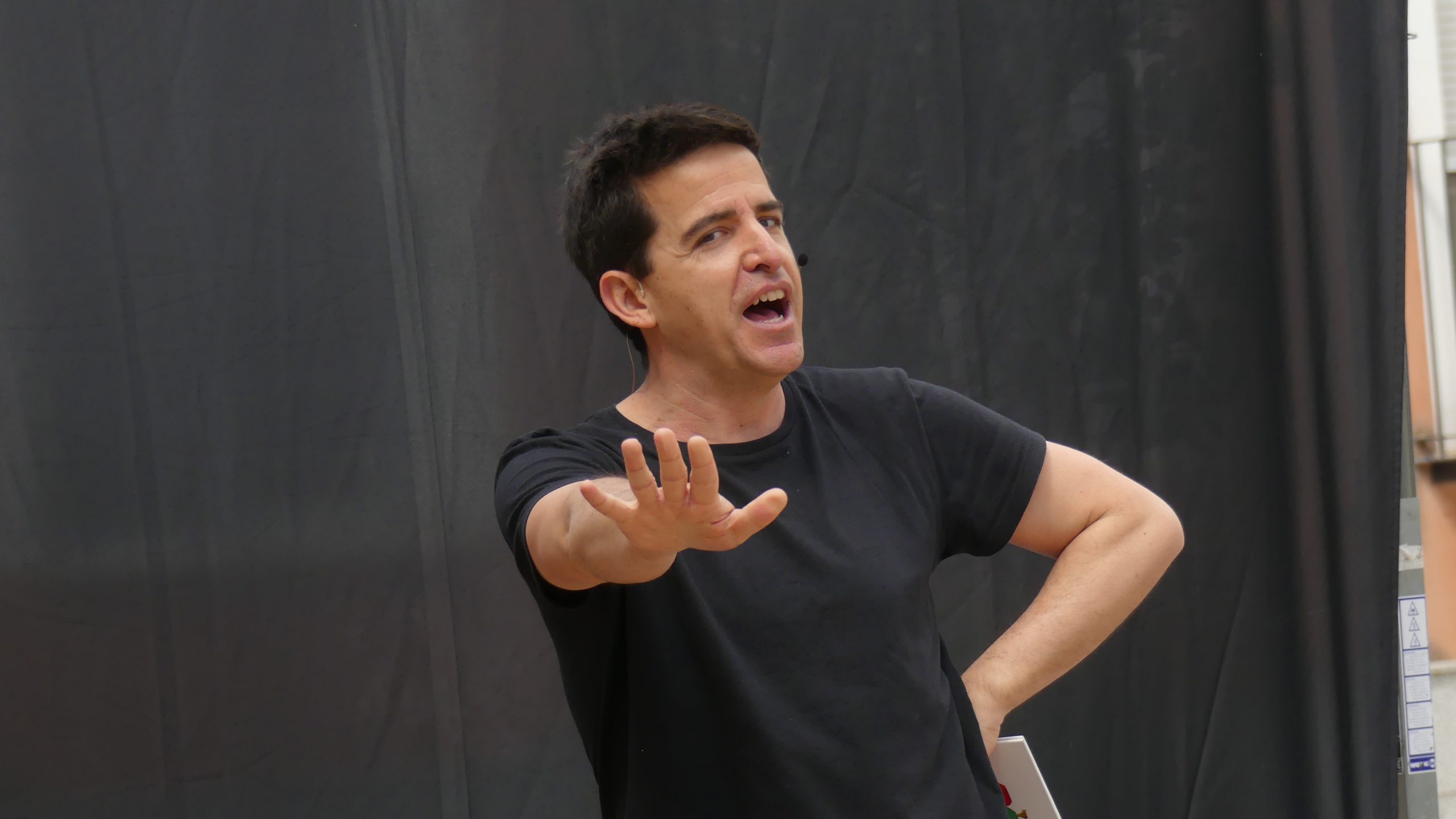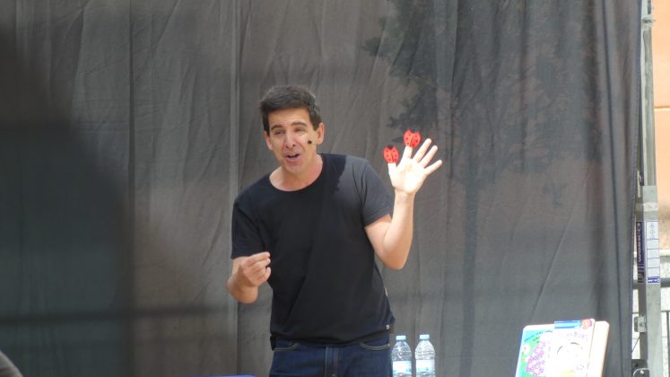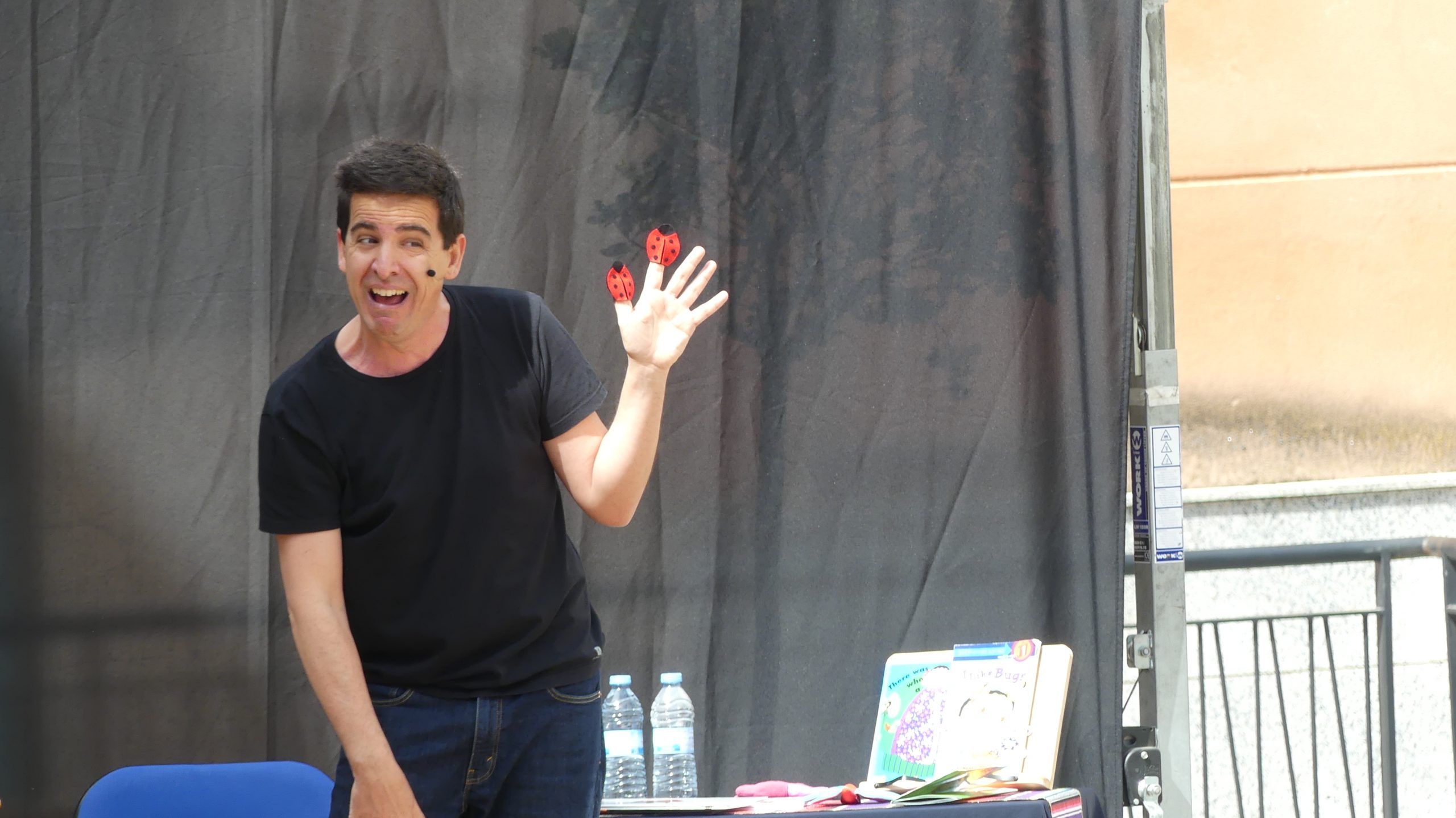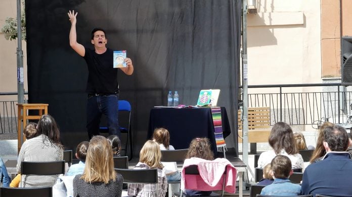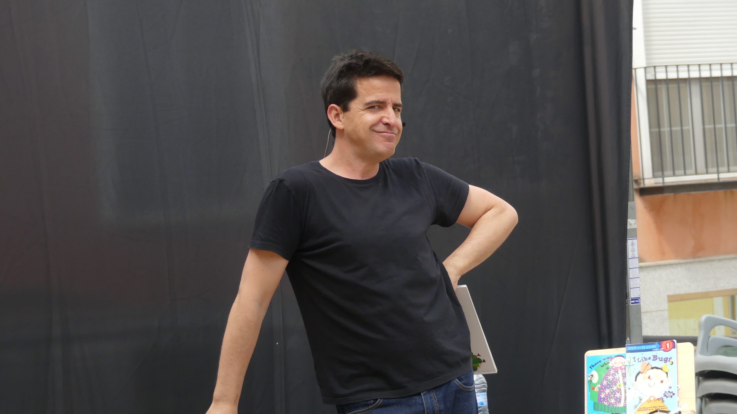 El primer espectáculo, muy apropiado para el aforo de la Plaza del Concejo, fue el de Estibi Mínguez. Este narrador hizo las delicias, en inglés, de un público infantil que seguía sin problemas y con toda atención sus palabras y sus bromas.