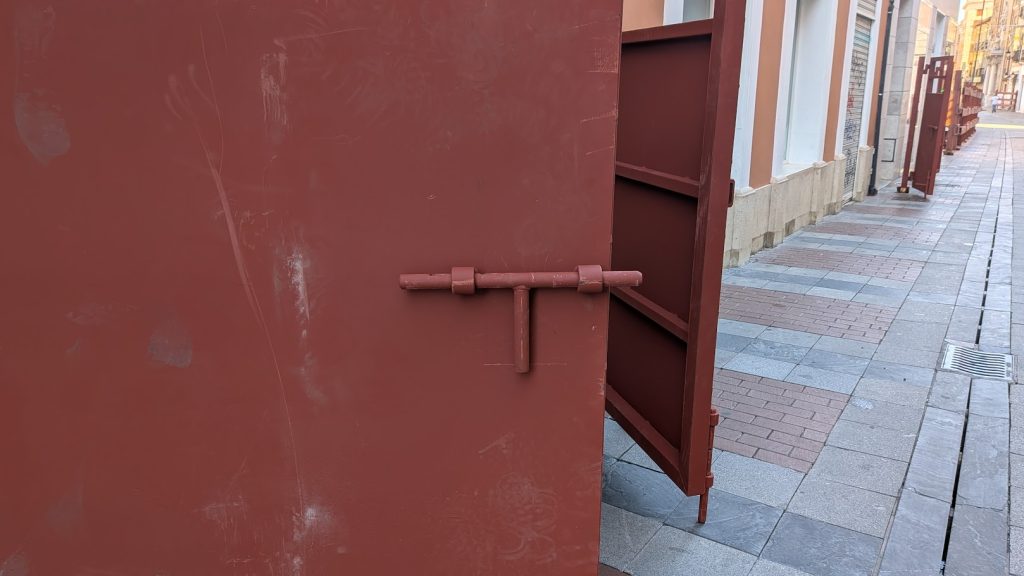 D la contundencia de lo dicho deja buena prueba el sistema de cierra y apertura de las puertas de hierro que se están instalando: los cerrojos sólo son practicables desde la calle, no desde el interior del portal, lo que evitar cualquier tentación de incumplir la norma.