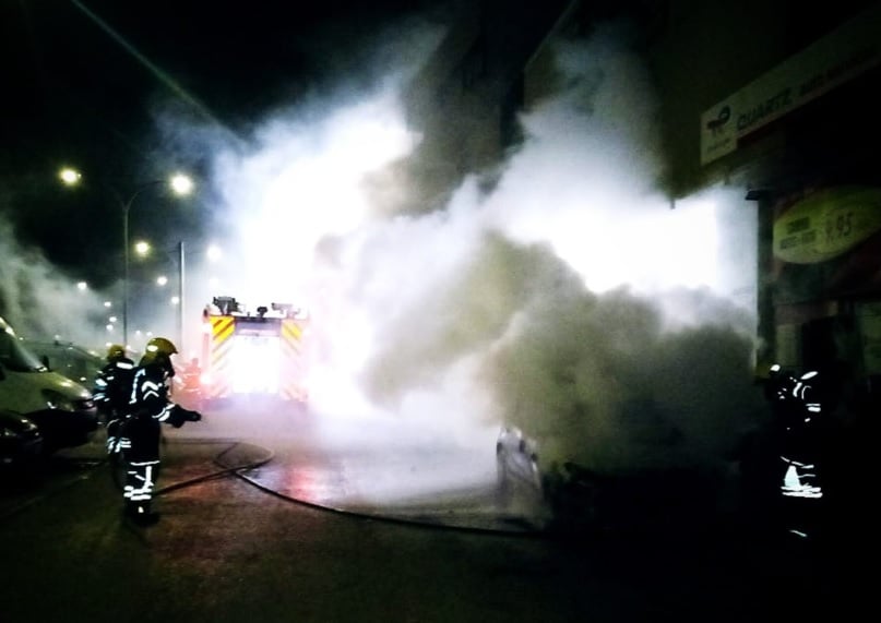 Un vehículo ardiendo en la vía pública, tanto por el capó como en el interior es lo que se ha notificado usando para ello las redes sociales tan cuestionadas por Pedro Sánchez y el Gobierno de España. Y lo que se comprueba es que el siniestro ocurrió a las puertas de un taller y con multitud de vehículos, de todo tipo, en las proximidades.