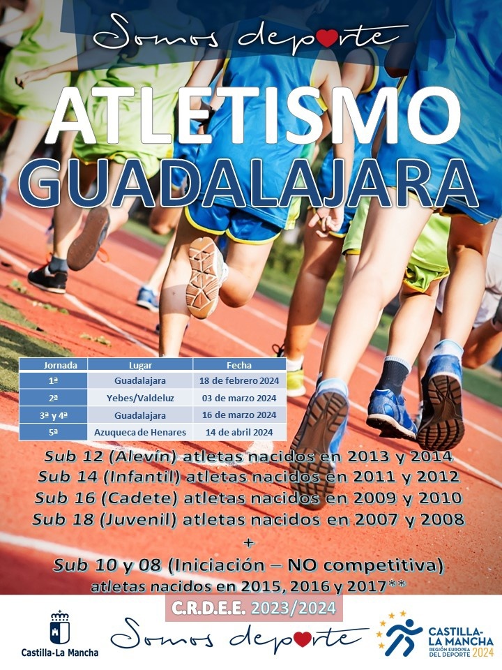 Guadalajara acoge este domingo la primera de las jornadas del Campeonato Provincial de Atletismo que organiza la Junta, una iniciativa que se enmarca dentro del programa regional ‘Somos Deporte 3-18’ para niños, adolescentes y jóvenes en edad escolar y que cuenta con unos 500 inscritos en las diferentes categorías.
