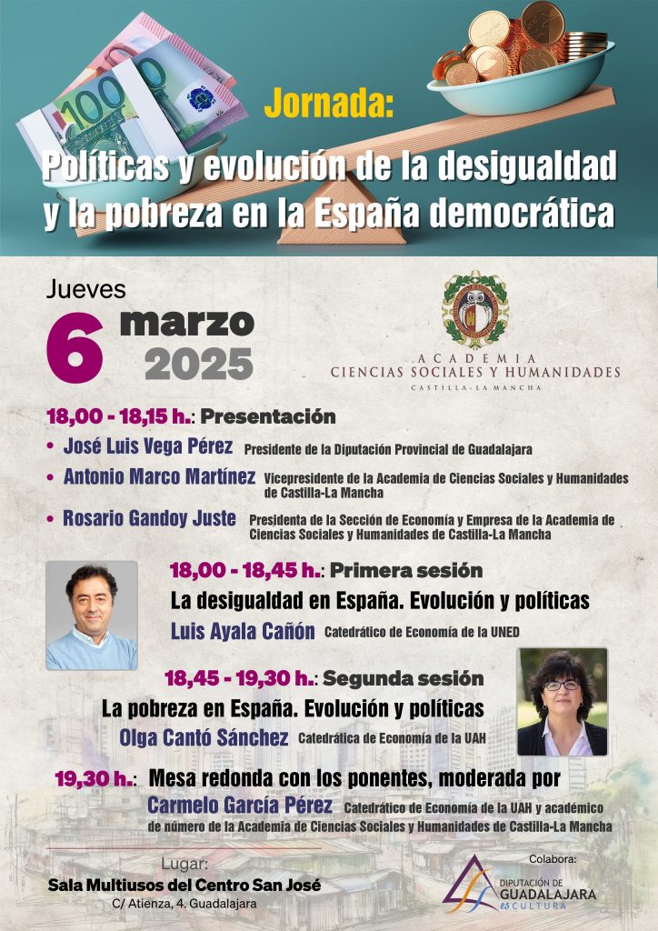Tras la apertura por parte de José Luis Vega, Antonio Marco y Rosario Gandoy llegará el turno de Luis Ayala Cañón, catedrático de Economía de la UNED. Su ponencia se titula «La desigualdad en España. Evolución y políticas».