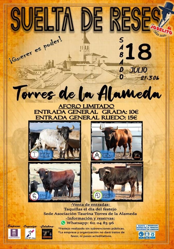 En el cartel, que se presenta bajo el lema de ‘Querer es poder’, informan de que se lidiarán toros de las ganaderías de Torrealta, El Boyeril, José María López de la Torre y Las Landas. Puntualizan que el festejo no cuenta con subvenciones públicas, ya que lo monta un empresario con la colaboración de la asociación taurina y el Ayuntamiento.