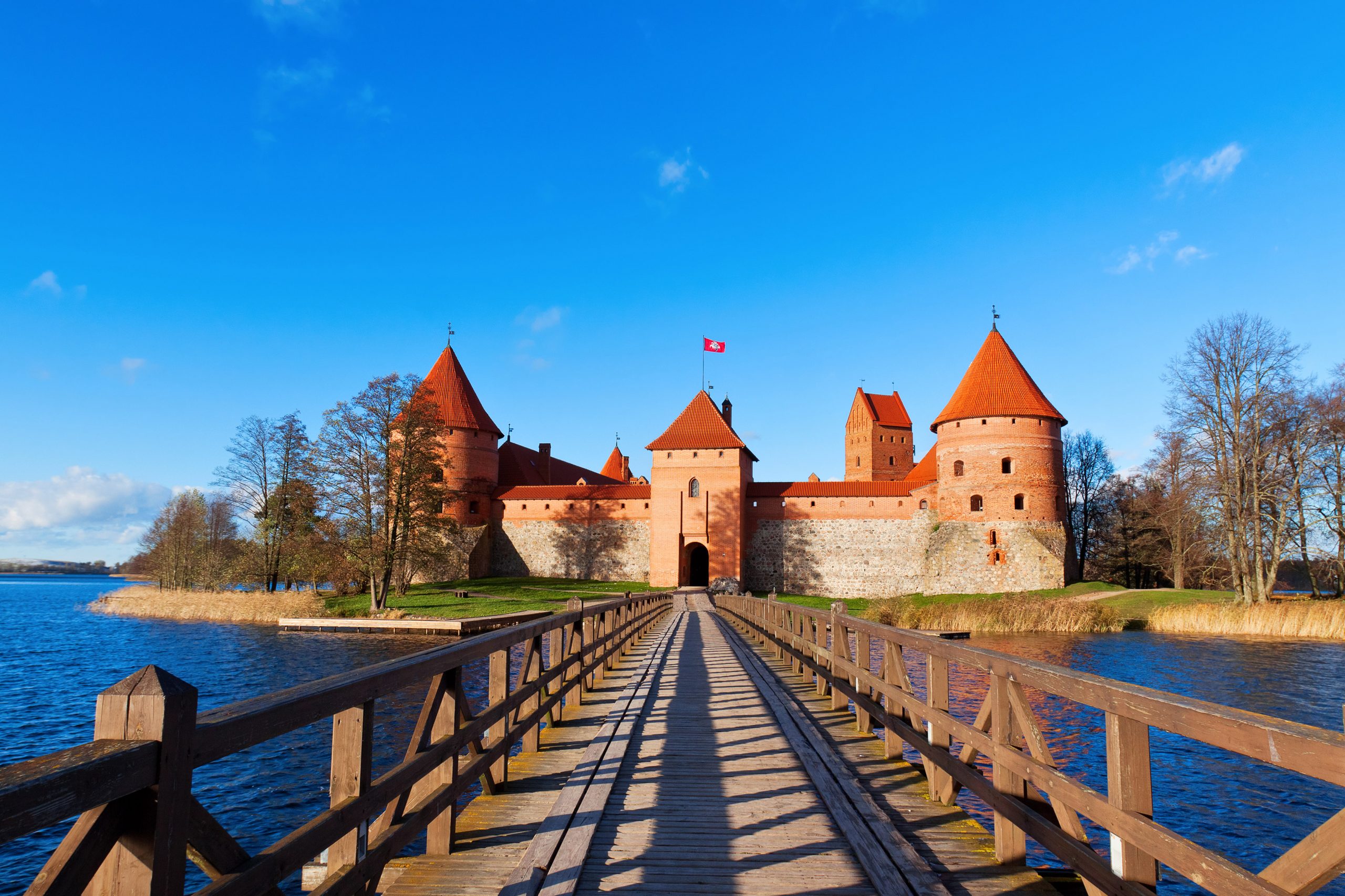 Ubicada en un idílico paisaje en la isla de Trakai esta pintoresca estructura del siglo XIV fue uno de los principales centros del Gran Ducado de Lituania, que se disfrutó como residencia de verano. Hoy el castillo consta de dos: el original, muy pequeño, situado a un lado del lago, y un segundo, erigido en siglos posteriores, ubicado en medio de las aguas. Citado por los entusiastas de la arquitectura como una verdadera encarnación del estilo gótico, el castillo ofrecía una serie de galerías de madera, paneles de vidrieras, murales y pasadizos secretos, que los visitantes pueden ver en el museo oficial del castillo.