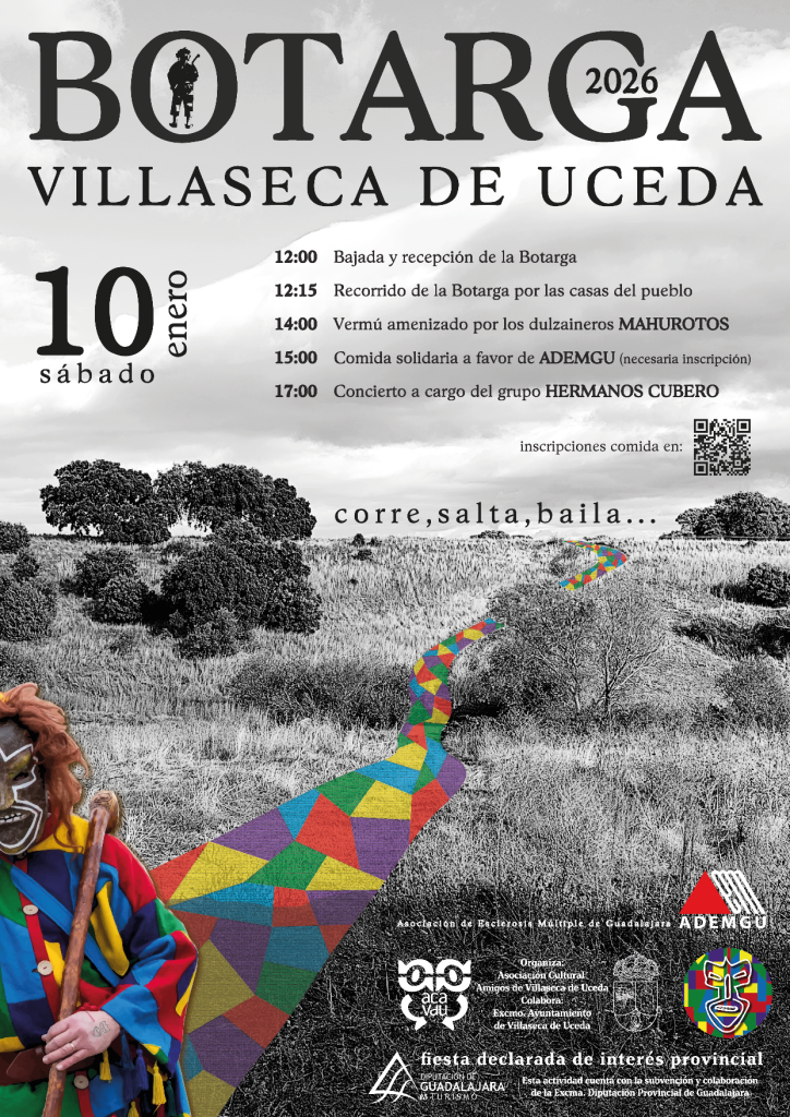 Celebración de la Fiesta de la Botarga de Villaseca de Uceda. Este sábado, 10 de enero. Por cuarto año consecutivo, desde que en 2023 se recuperara gracias al trabajo de la Asociación Cultural «Amigos de Villaseca de Uceda», la botarga vuelve a recorrer las calles del pueblo. Tras su llegada desde el monte, el recorrido por las calles y casas del pueblo y el baile-vermú, amenizado por los Dulzaineros «Mahurotos», se celebrará una comida popular benéfica (con todo lo recaudado se realizará una donación a ADEM-GU (asociación destinada a mejorar la situación de las personas afectadas por Esclerosis Múltiple y enfermedades similares) que será entregada directamente por miembros de la organización. Como colofón se cuenta este año con la actuación de Los Hermanos Cubero, dúo musical de Guadalajara, famosos por fusionar la música tradicional de Castilla con el bluegrass y country estadounidense, usando principalmente guitarra y mandolina. En sus inicios (año 2010) se les otorgó el II Premio Europeo de Nueva Creación de Folclore «Agapito Marazuela». Desde entonces han llevado su sonido a escenarios muy dispares: festivales de música folk (Pirineos Sur, Folk Segovia, Fira Mediterranea de Manresa, Etnosur…), festivales de música independiente (Sonorama, Monkey Week, BAM Barcelona Acció Musical…), y salas del circuito de rock y pop.