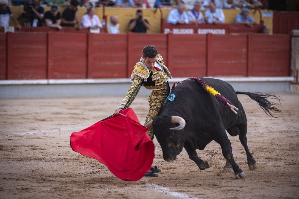 Su primero salió suelto, algo típico de este encaste Núñez, pero no tardó en cogerle el aire para lancearlo a la verónica, rematando con una larga. El de Gerena brindó a la Alcarria, para comenzar su faena por alto, sacándolo por abajo en los remates y toreó ceñido en la distancia corta sobre la diestra. Fue moldeando una faena que en otras manos hubiera acabado tirando por la calle del medio. Al de Alcurrucén se le administro el antídoto del temple y consiguió que el público entrara en la faena del sevillano, al natural.