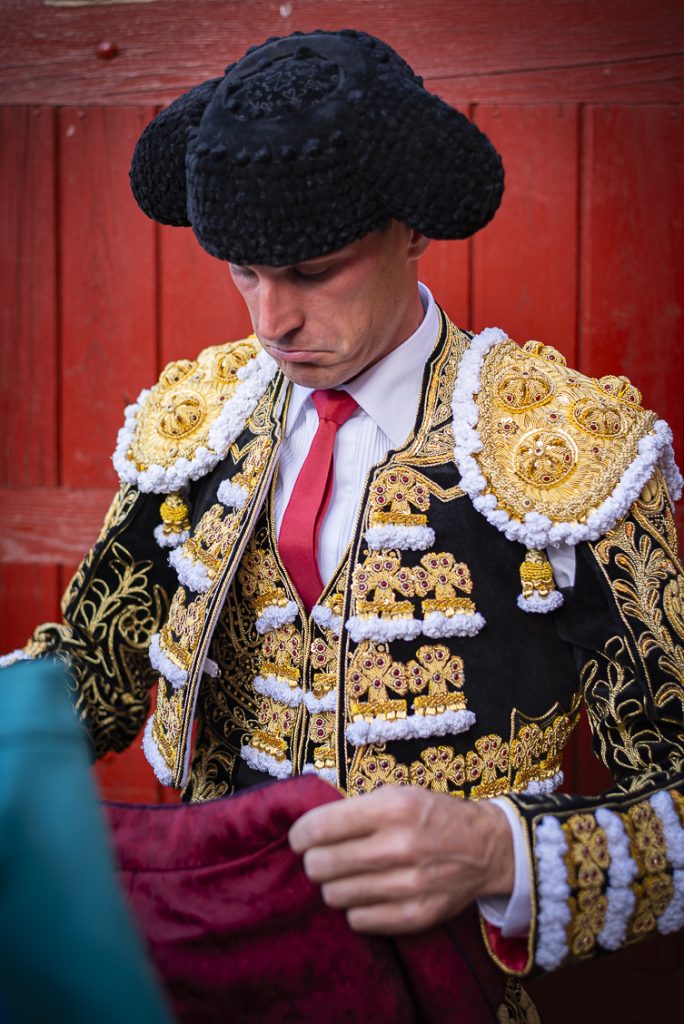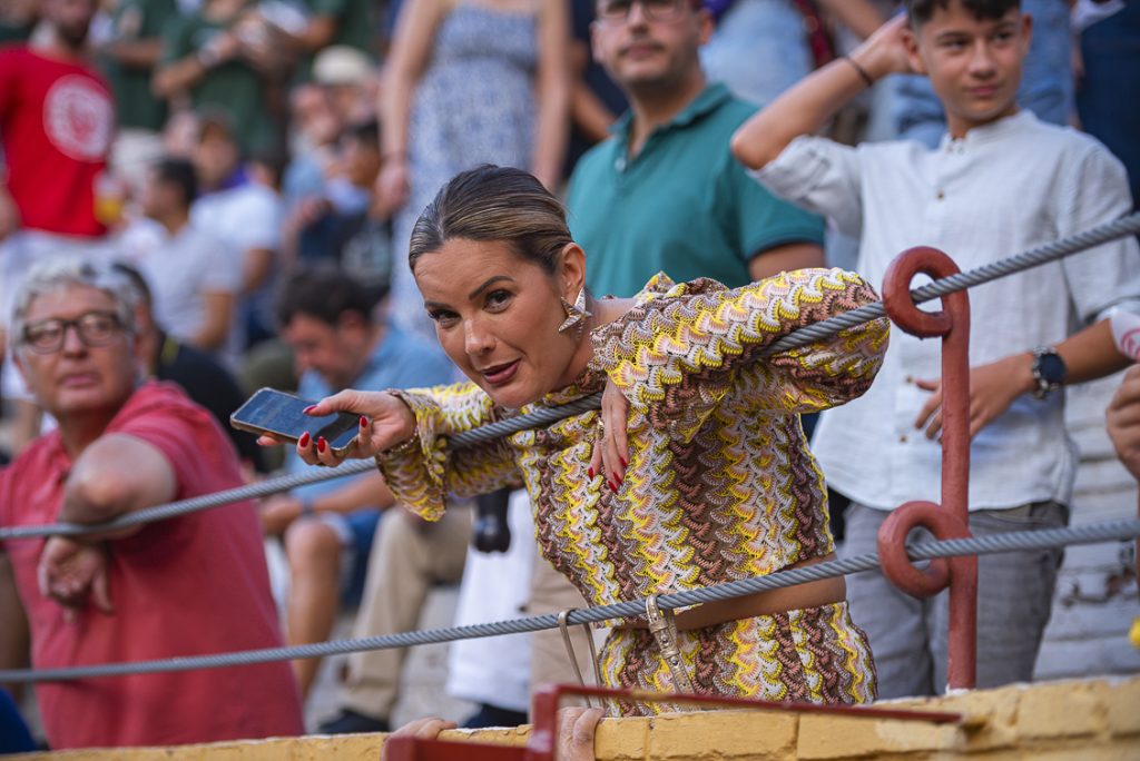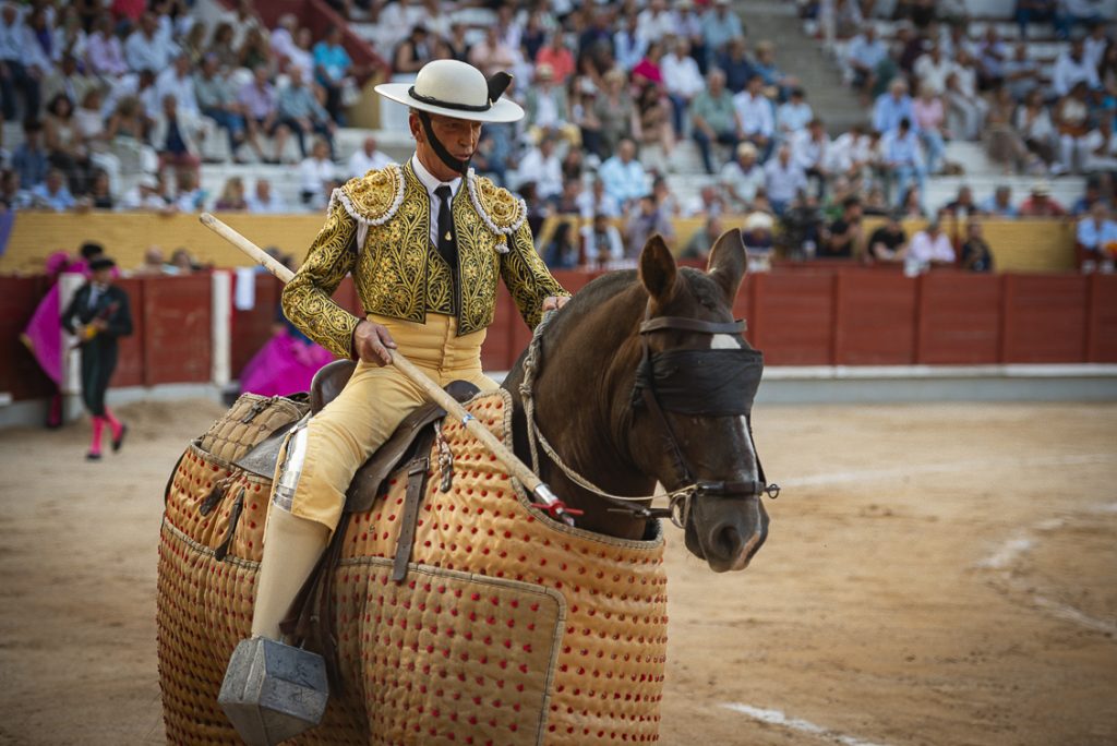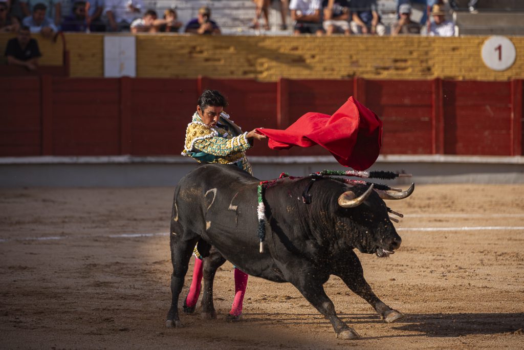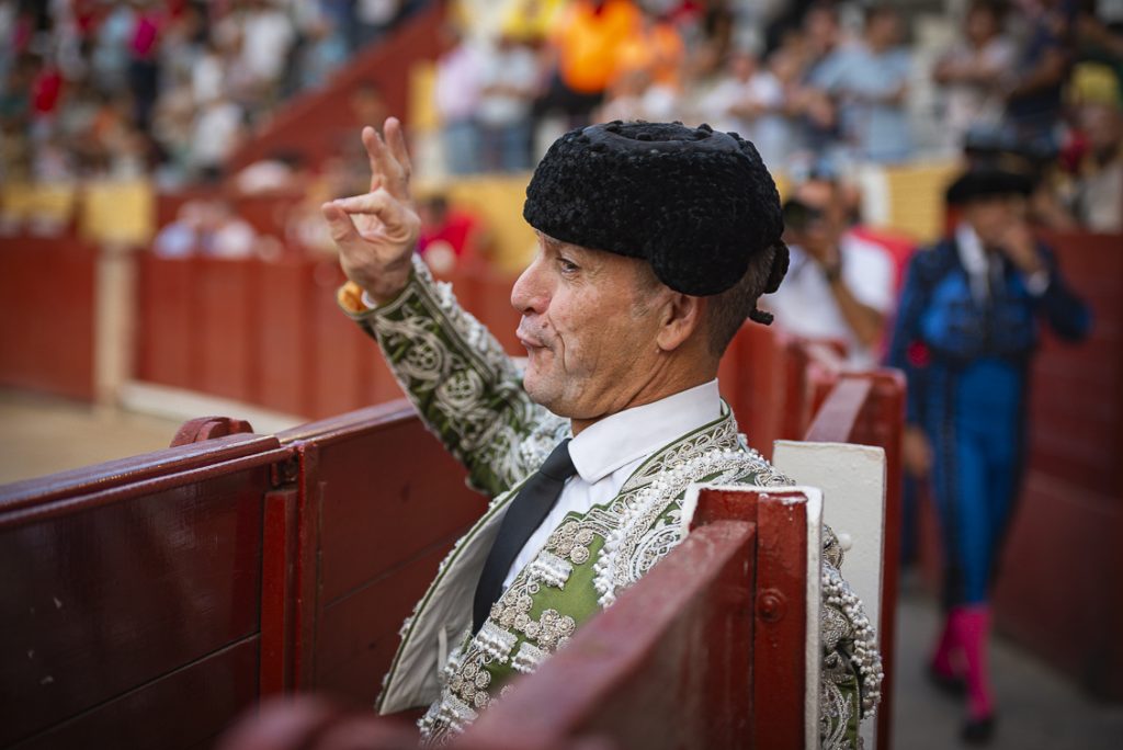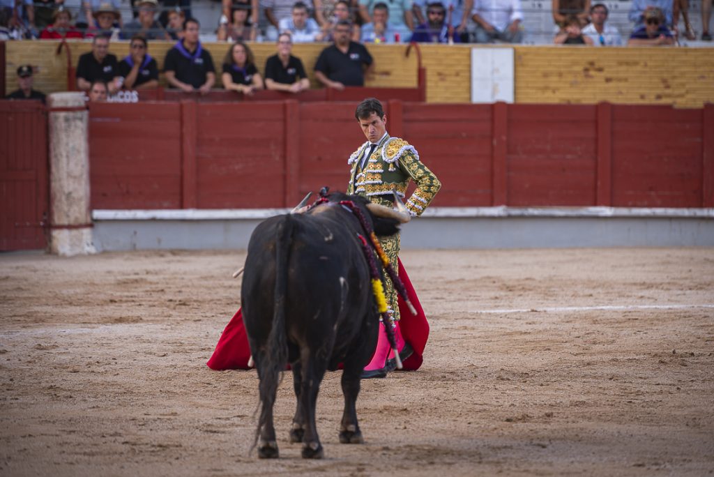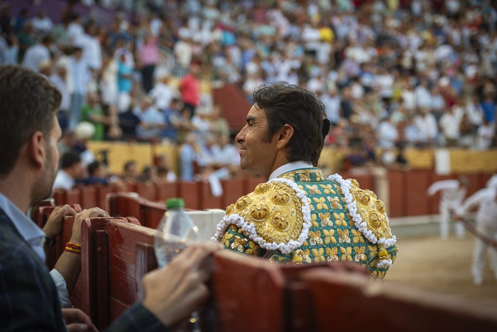 Con su primero, al que le costó llegar a los burladeros, lo saludó con un farol, a pesar de su corta acometida. Al toro se le recetó un puyazo marcado en el costillar, mal picado como toda la corrida… ¡qué digo, como toda la feria hasta el momento!