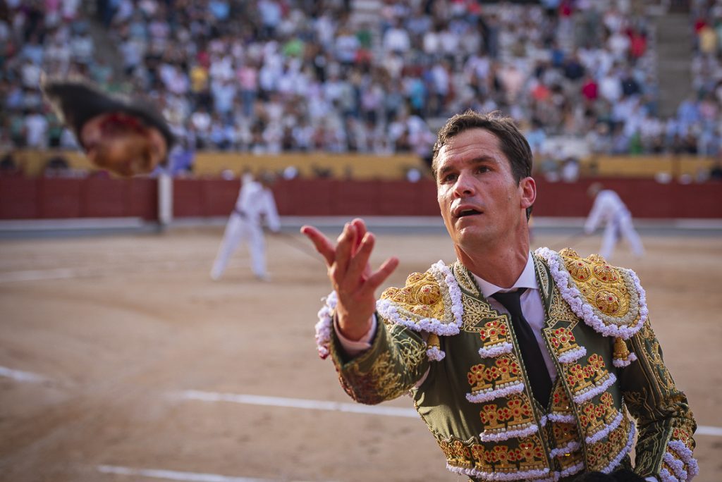 Se los robó de uno en uno y en el epílogo de la faena nos deleitó con unas luquesinas, se tiró a matar y cobró una buena estocada, teniendo que coger la cruceta para atronar al de Alcurrucén. La petición, unánime, fue atendida y cortó un trofeo.