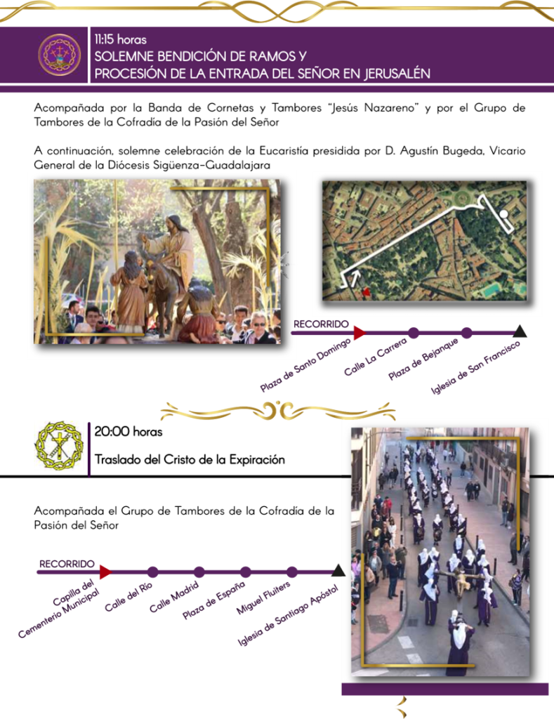 También habrá el Jueves Santo por la mañana visitas guiadas desde la concejalía de Turismo, a las cuatro ciudades canónicas en un doble horario, a las 10:30 h a. 12:00 h, “para conocer los monumentos, su patrimonio y entrelazarlo, con lo que es la historia de las cofradías, que también es un patrimonio cultural”.