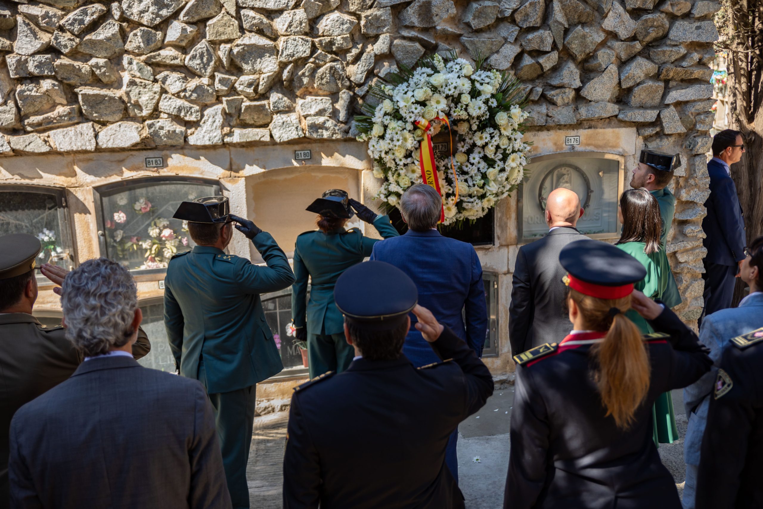 Este mismo miércoles por la mañana, como parte del homenaje al general, se ha destapado la placa en el Cementerio de Montjuïc que le reconoce como persona ilustre y Prieto, Martínez, González y la subdelegada del Gobierno en Barcelona, Pepín Beltran, han participado en una ofrenda floral ante su nicho.