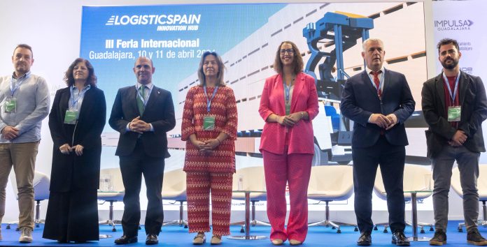 La presidenta de CEOE-CEPYME Guadalajara, María Soledad García; el presidente de las Cortes de Castilla-La Mancha, Pablo Bellido; la consejera de Igualdad de la Junta de Castilla-La Mancha, Sara Simón; la alcaldesa de Guadalajara, Ana Guarinos; el presidente de la Diputación Provincial José Luis Vega y los secretarios generales de CCOO y UGT Guadalajara, Javier Morales y Alejandro Coracho han inaugurado esta mañana la tercera edición de la feria internacional ‘Logistics Spain, Innovation Hub’.