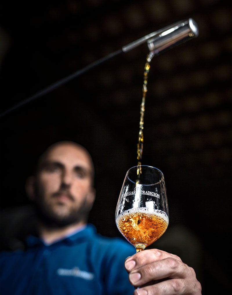 OLOROSO. Es el vino de la paciencia, que envejece en contacto directo con el oxígeno sin el velo de flor. De color caoba y aromas que recuerdan a la nuez y a la madera noble, es un vino complejo y muy estructurado, con mucho cuerpo y notas también a frutos secos. Sin azúcar, pero con una fragancia que llena la habitación. Su potencia lo hace ideal para maridar con carnes de caza o quesos muy curados.