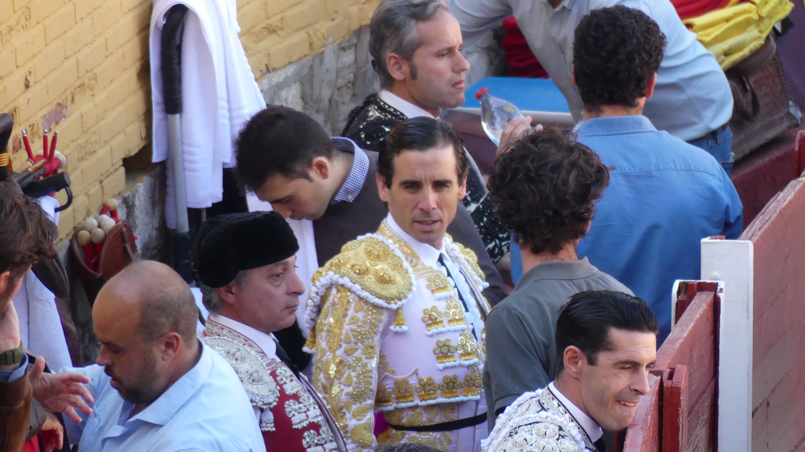 Talavante, que abrió plaza, pasaba por ahí. Pablo Aguado, desarmado en el primer intento de capotazo al tercero, recibió saludos desde el tercio. En el que cerró plaza, que nunca debió pasar el reconocimiento después de cómo quedó durante el encierro matinal, acabó entre pinchazos y con aviso.
