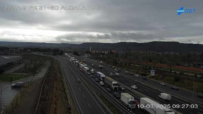 Toda la circunvalación de Alcalá de Henares seguía siendo a las 9.30 de la mañana del lunes un colosal atasco por culpa de un accidente ocurrido en sentido entrada a Madrid.
