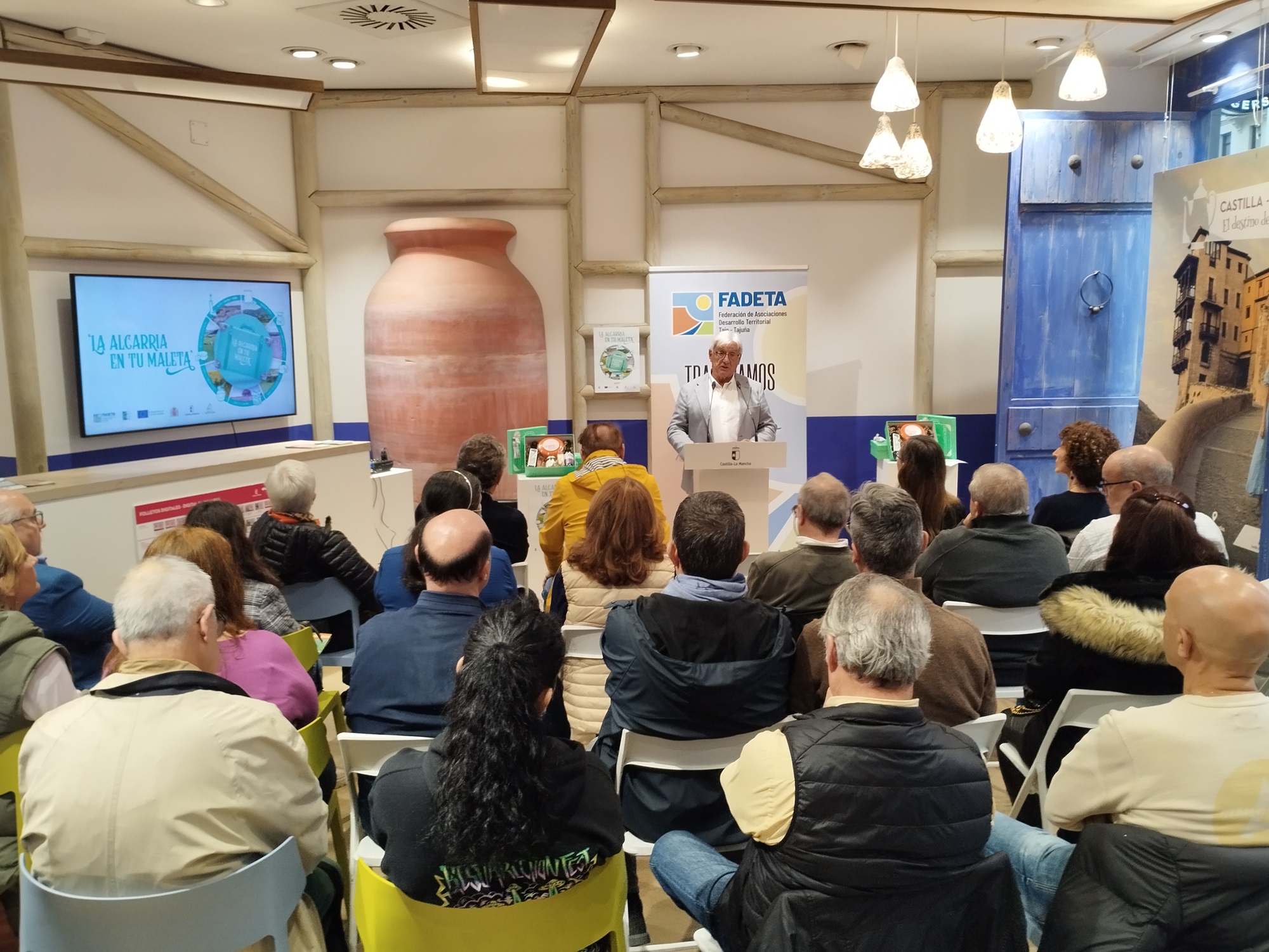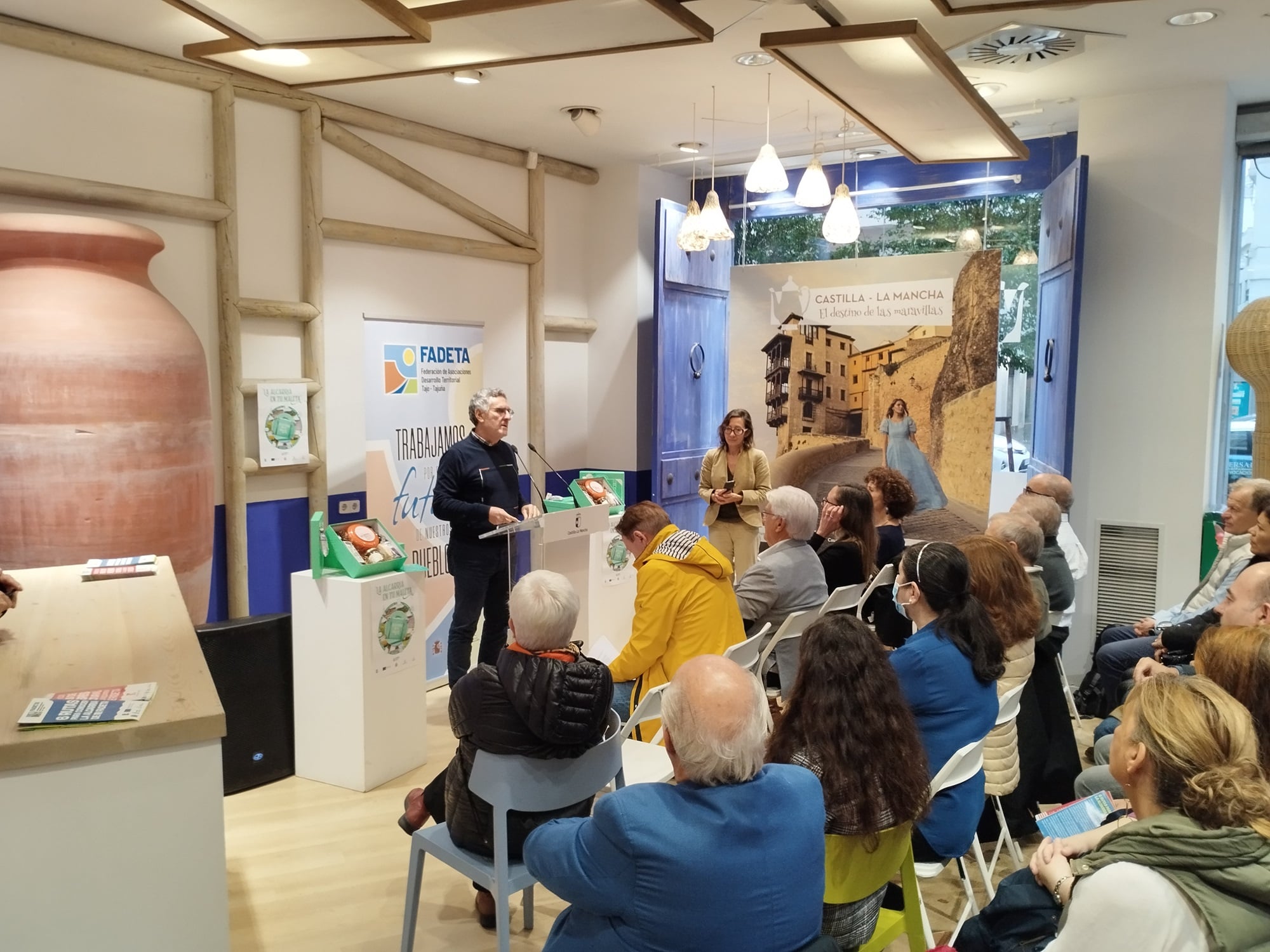 La presentación en la Oficina de Promoción Turística de Castilla-La Mancha en Madrid ha puesto el broche final a las diferentes actividades promocionales que ha llevado a cabo FADETA de la mano de ‘La Alcarria en tu maleta’, una iniciativa que arrancó siendo presentada en FITUR (el gran escaparate internacional de Turismo) y después aterrizó en Madrid Fusión y Salón Gourmet, entre otros eventos.