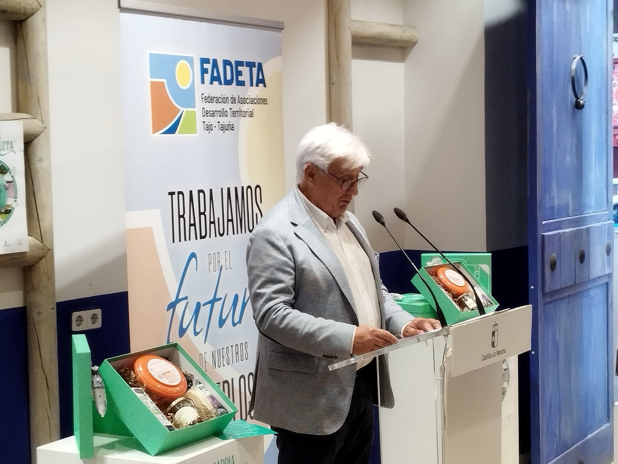 Este encuentro ha finalizado con una degustación de productos alcarreños que ha permitido saborear el territorio. Asimismo, todos los asistentes han sido obsequiados con una de estas simbólicas maletas gastronómicas en forma de caja que contiene muestras de quesos de leche de oveja o de vaca, aceite de oliva virgen extra Denominación de Origen Aceite de la Alcarria, cerveza de lavanda, torreznos y miel con Denominación de Origen la Alcarria, además de un saquito de lavanda, “la planta aromática que nos ha hecho internacionalmente conocidos y que ha supuesto un motor de desarrollo para nuestra comarca”, afirmaba el presidente de FADETA.