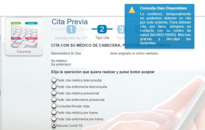 Admitir los fallos presentes de la web no exige un gran esfuerzo, pues basta con acceder al portal del SESCAM y comprobarlo, como ha hecho este diario. Cuando se introducen los datos personales, un mensaje alerta de la imposibilidad de culminar la operación y deriva al usuario a que lo intente por vía telefónica con su centro de salud, si le atienden.