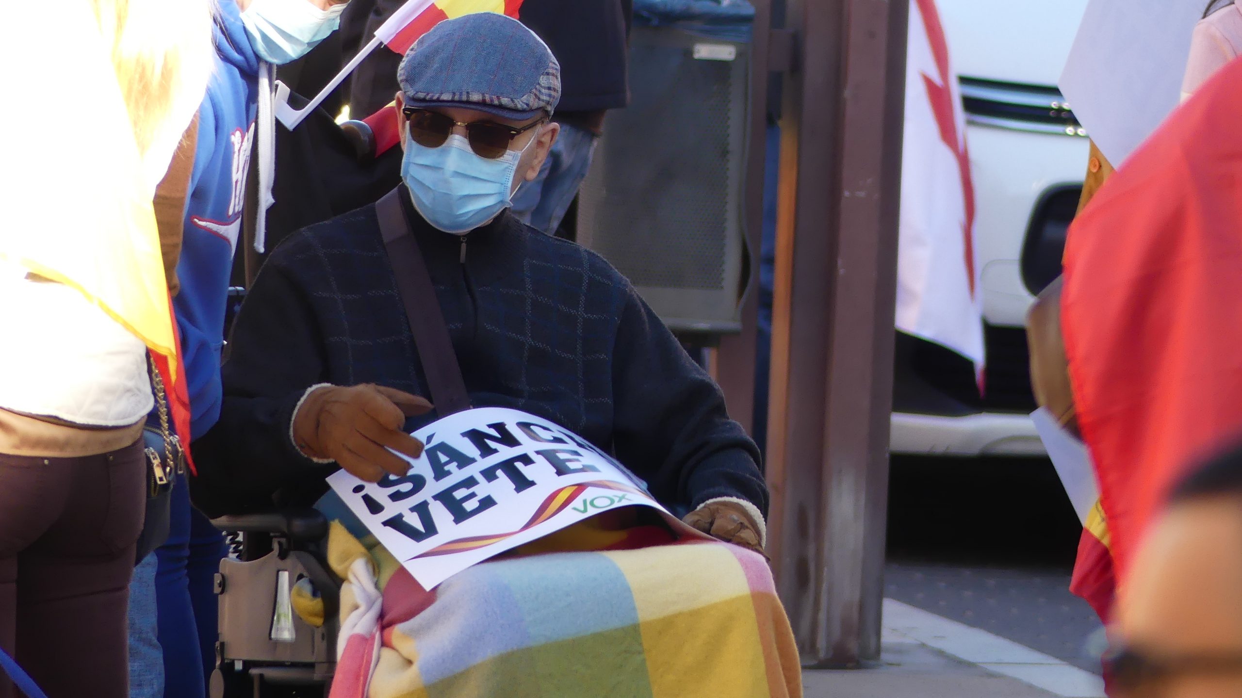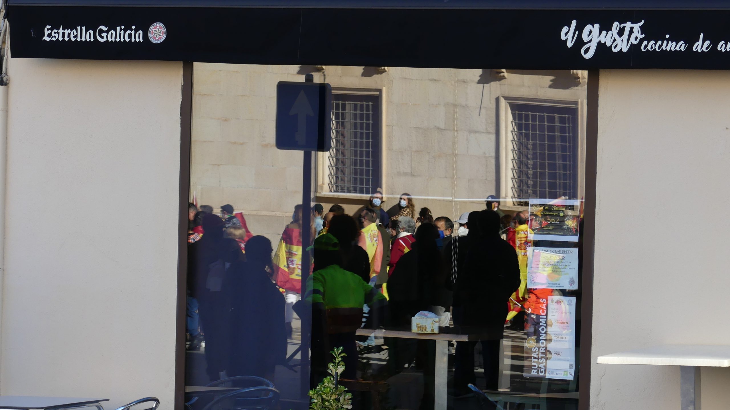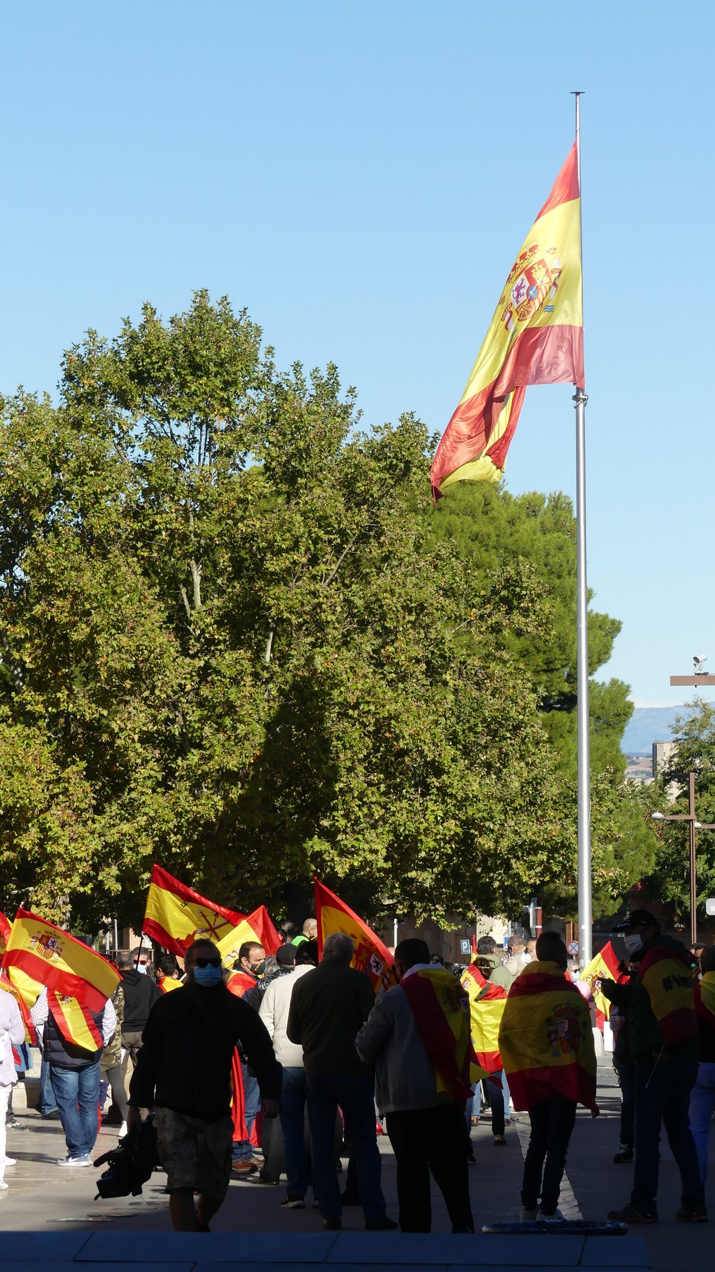 Desde mucho antes de las 11 de la mañana, hora teórica de inicio, ya se podía ver alguna bandera española por la Calle Mayor. Con una de ellas en el regazo salía una mujer de San Nicolás; después de un buen rato de espera con la enseña nacional a la espalda, se unía a ella otra señora, bandera en mano. Esa fue la constante entre todos los presentes: los colores rojo y gualda del símbolo más reconocible de España. Sin «aguiluchos», todo sea dicho.
