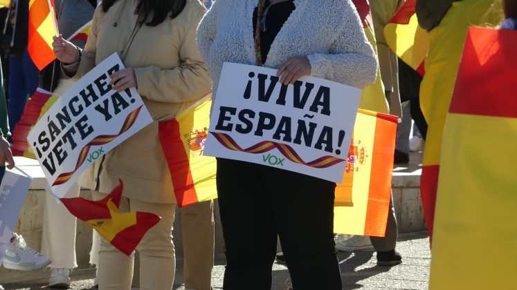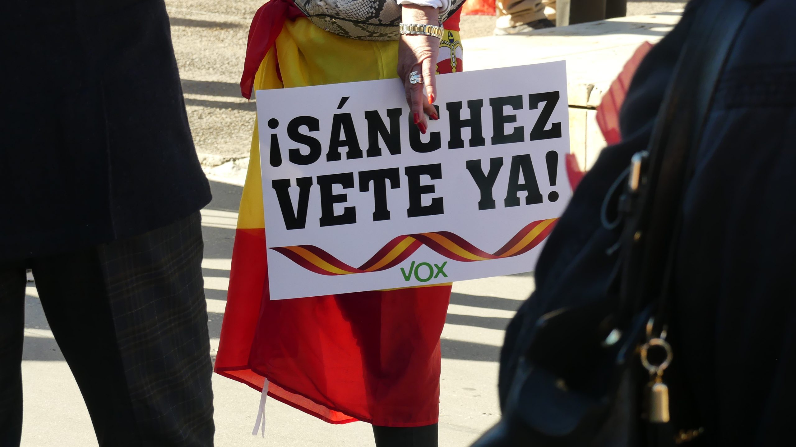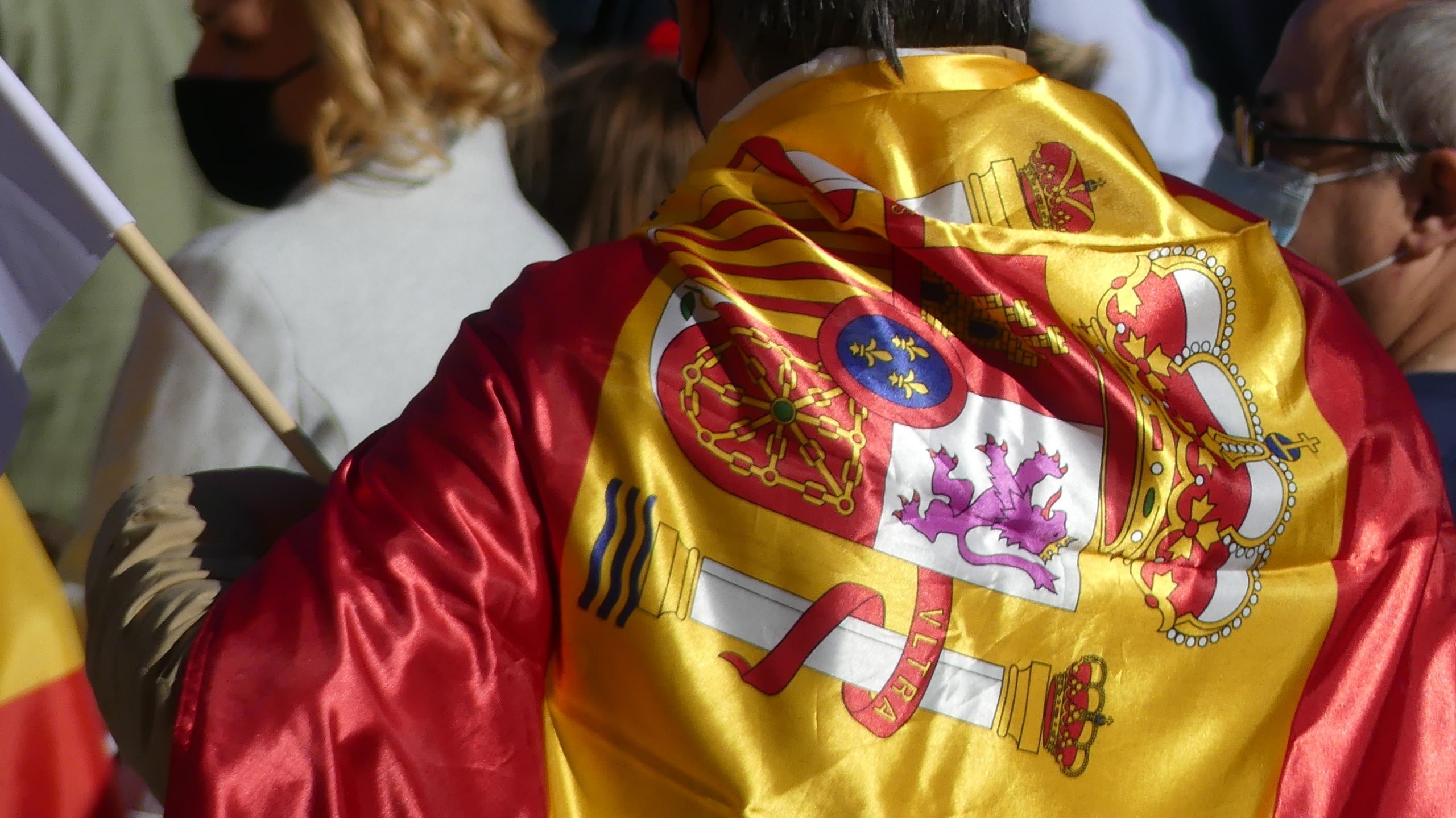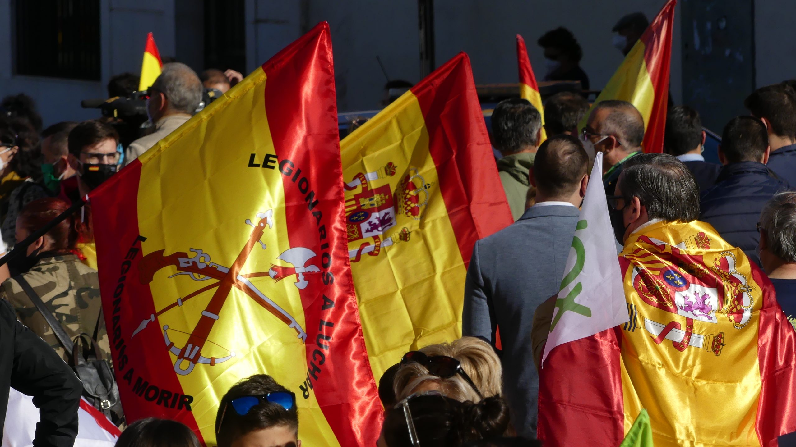 Desde mucho antes de las 11 de la mañana, hora teórica de inicio, ya se podía ver alguna bandera española por la Calle Mayor. Con una de ellas en el regazo salía una mujer de San Nicolás; después de un buen rato de espera con la enseña nacional a la espalda, se unía a ella otra señora, bandera en mano. Esa fue la constante entre todos los presentes: los colores rojo y gualda del símbolo más reconocible de España. Sin «aguiluchos», todo sea dicho.