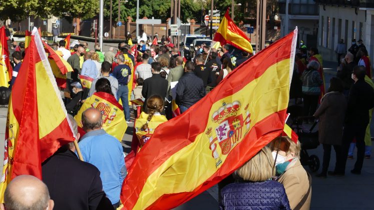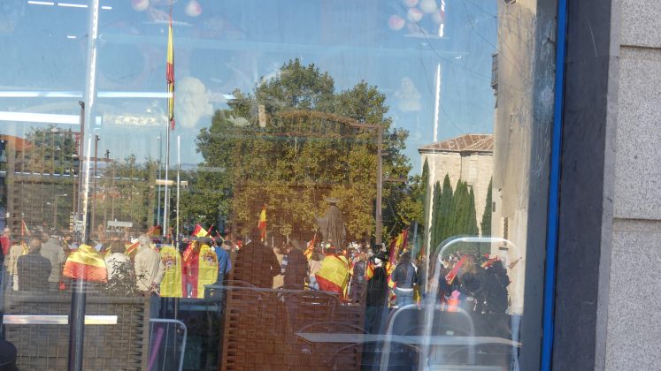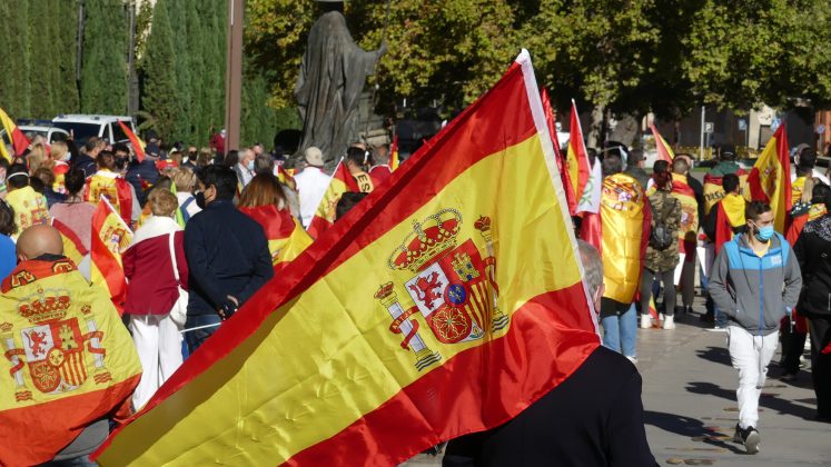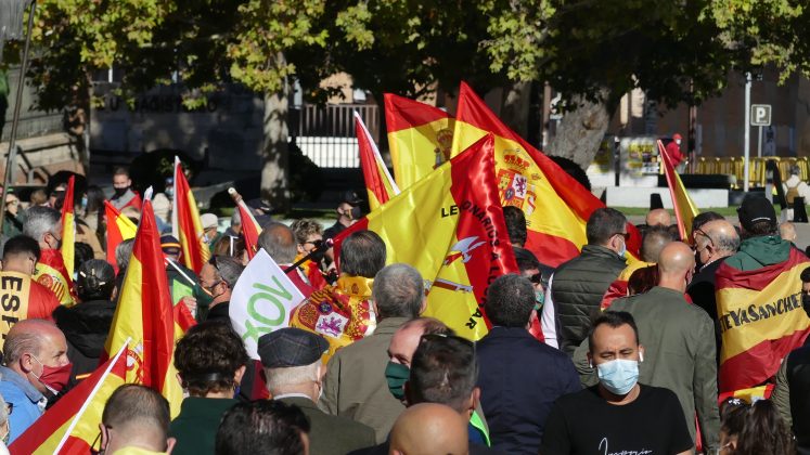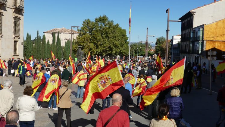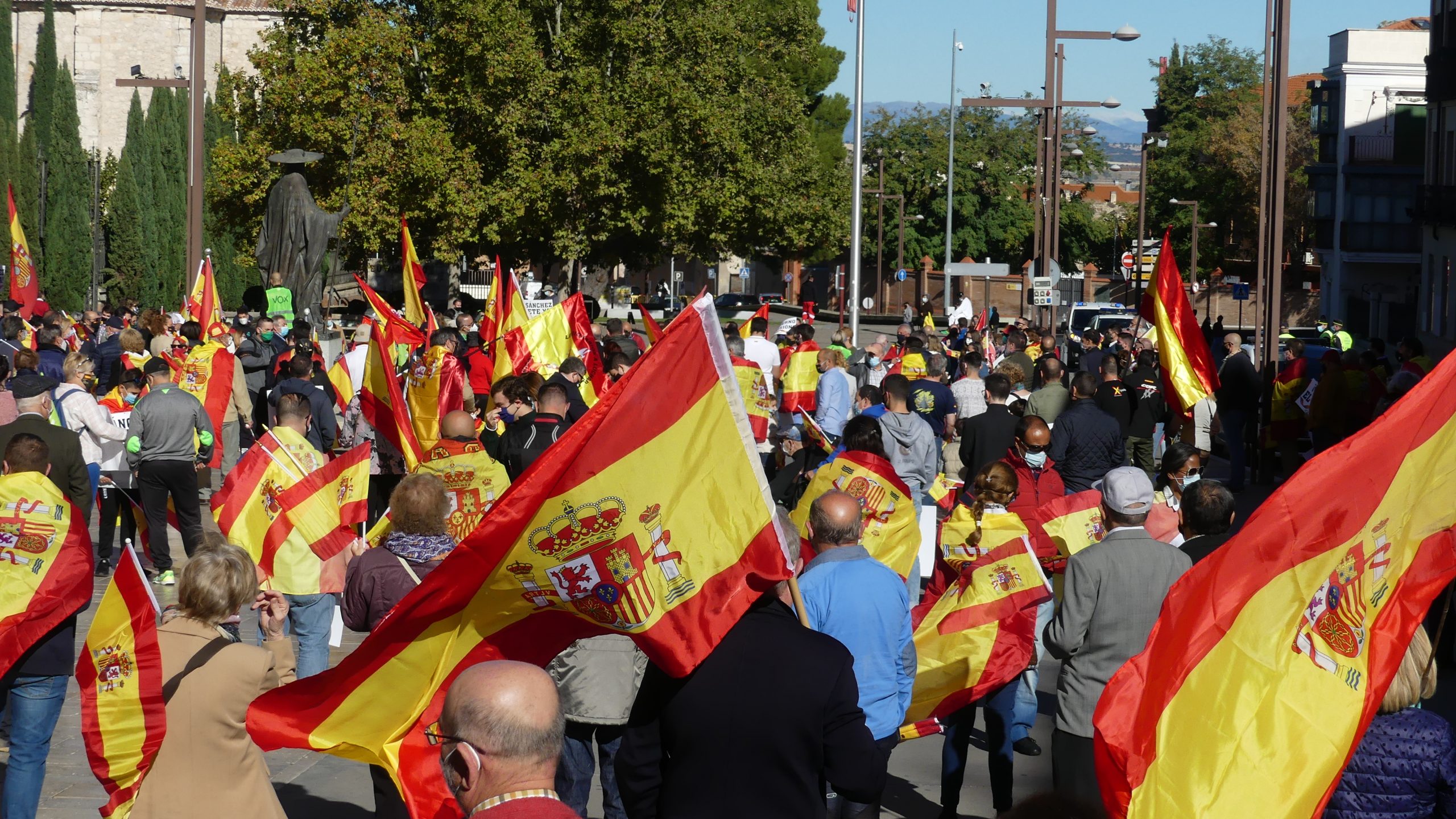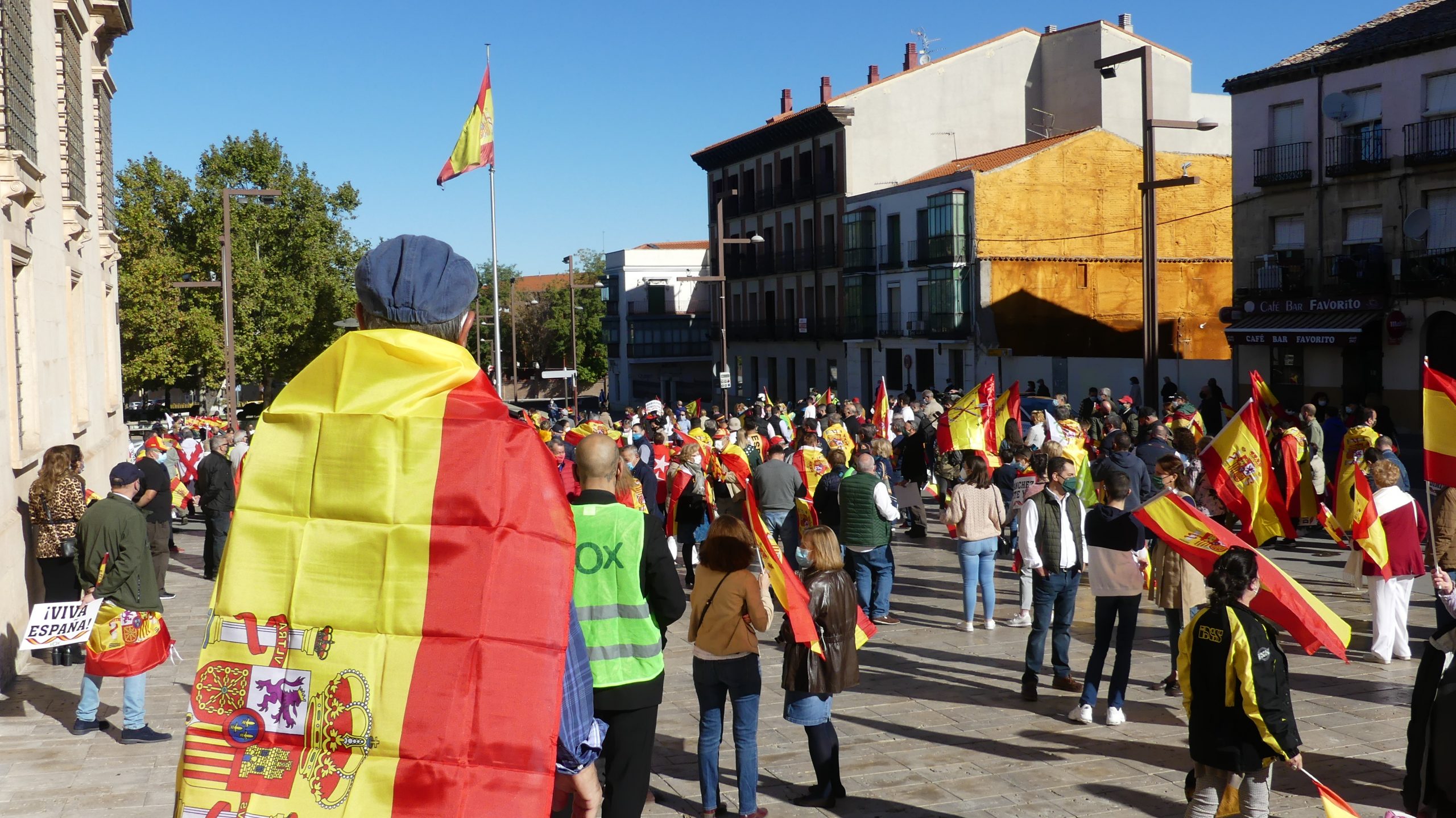 Desde la Plaza de España a la Glorieta de las Víctimas del Terrorismo, a dos pasos de la Avenida del Ejército y hasta la calle de la Constitución. Esa era la geografía urbana que rodeaba a los presentes, llena de connotaciones militares y patrióticas por obra y gracia del callejero de la ciudad. Ese era el escenario elegido por Vox este 12 de Octubre, fecha reconocida oficialmente como Fiesta Nacional de España, para animar a quienes comparten sus ideas y sus temores a salir a las calles de Guadalajara. La convocatoria fue seguida por varios cientos de personas, como colofón de una marcha que ya vino marcada en los días previos por la polémica de su prohibición gubernativa y la posterior autorización judicial.