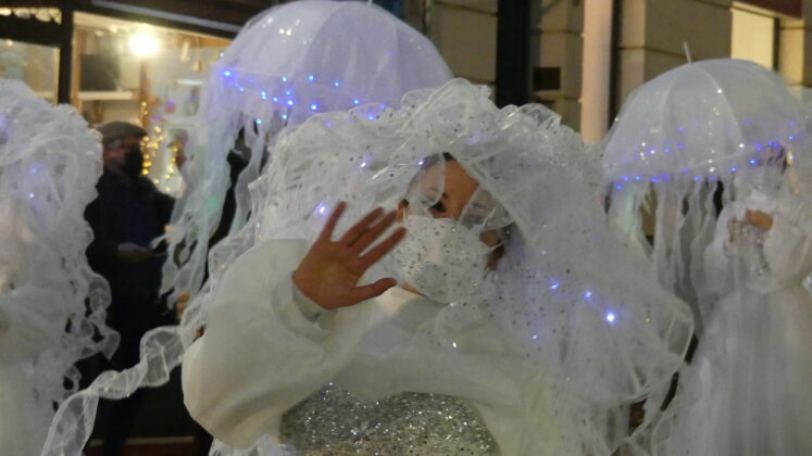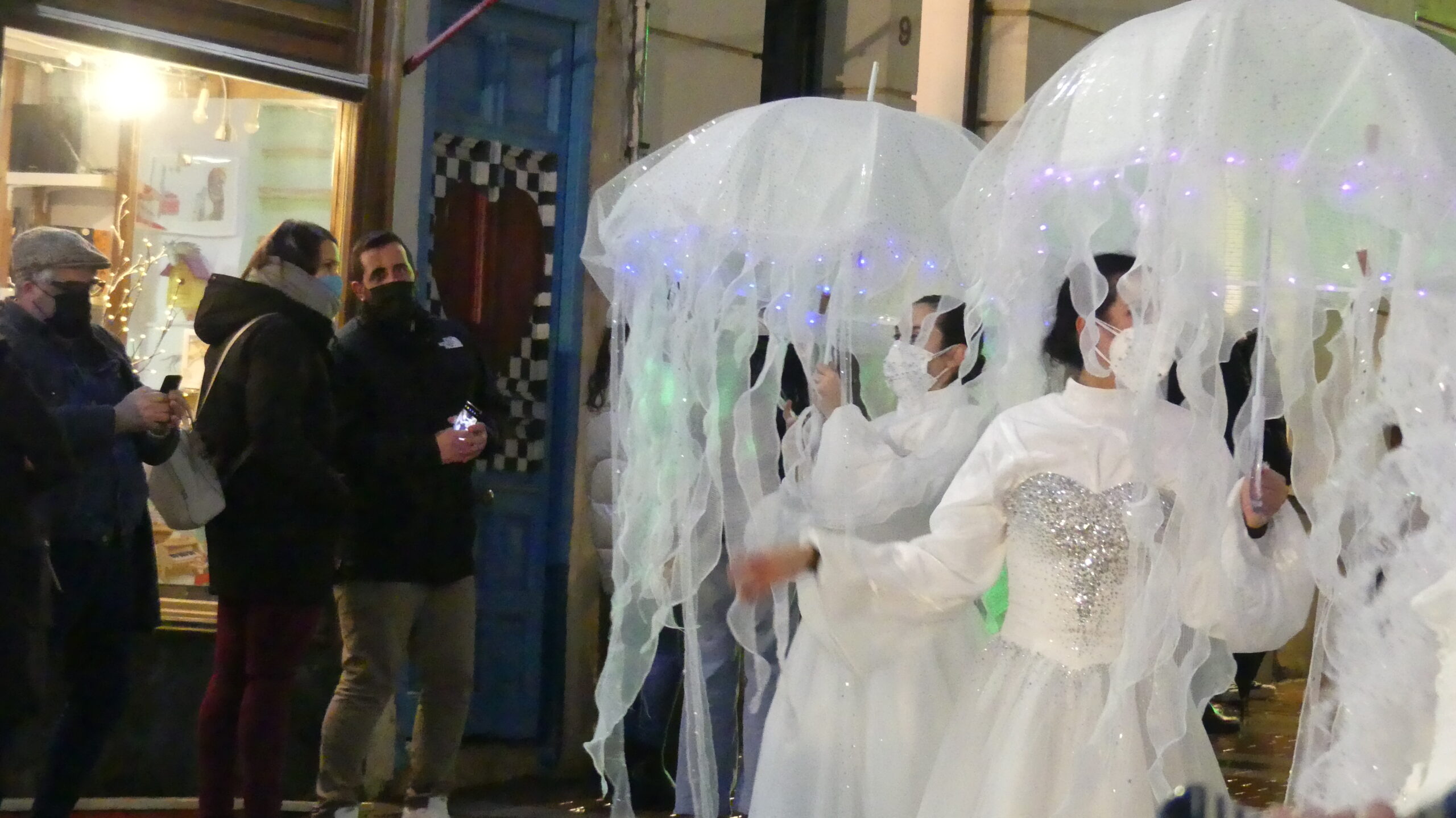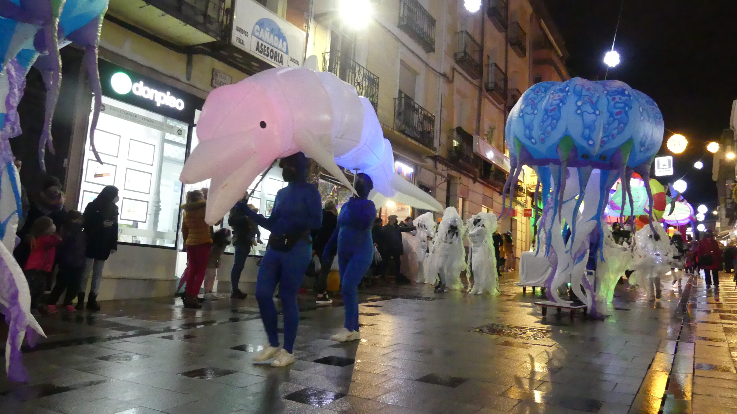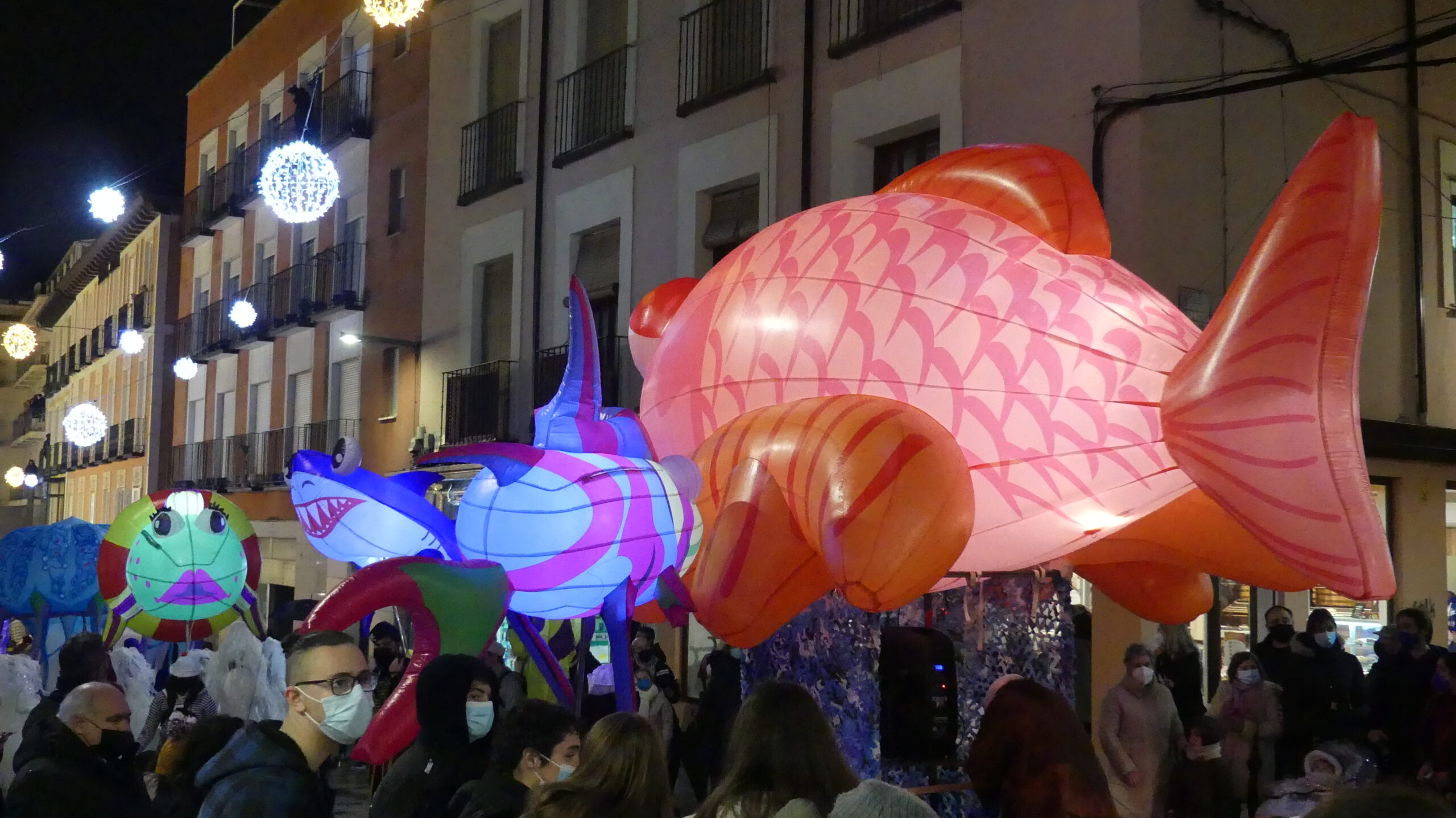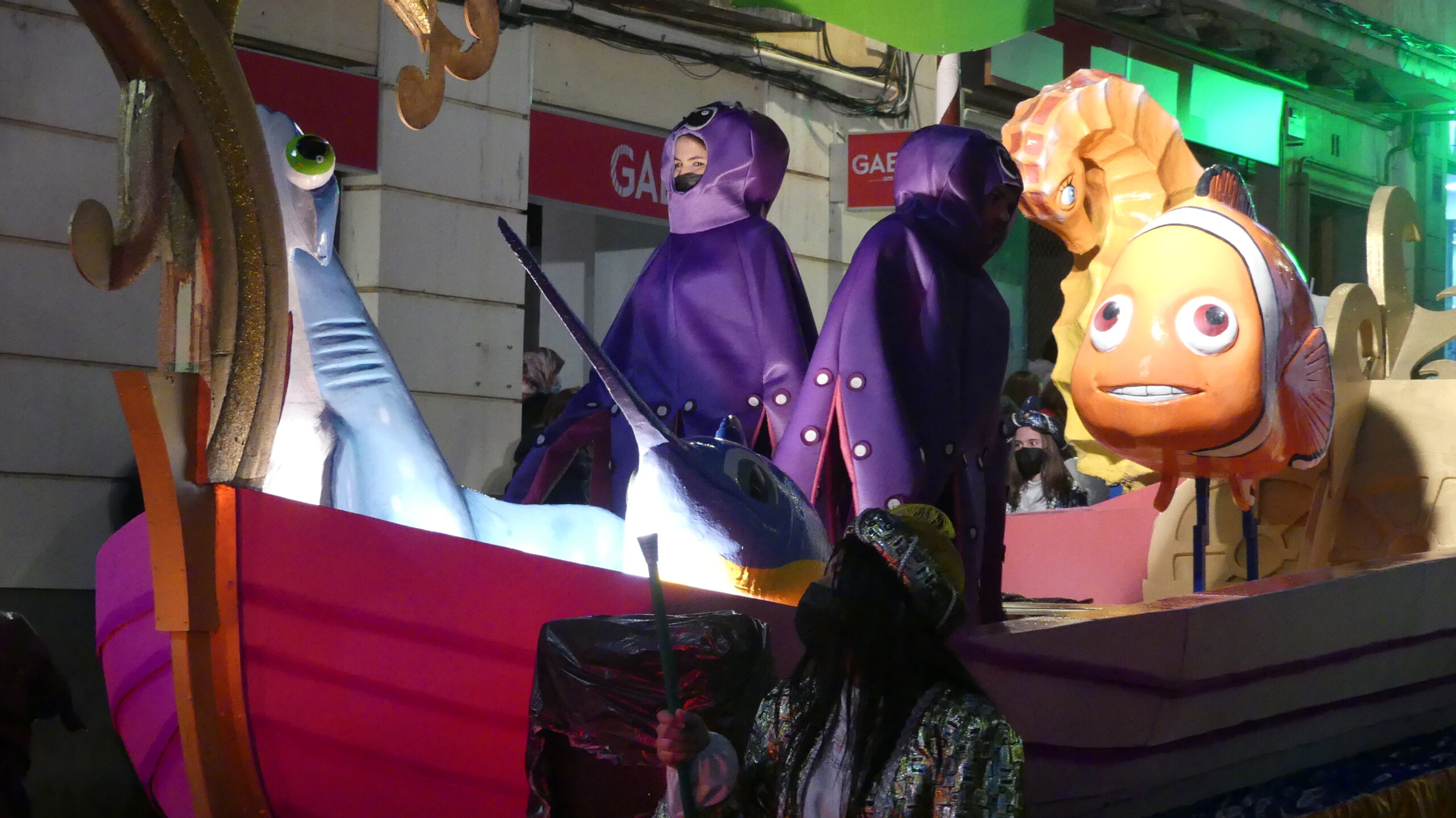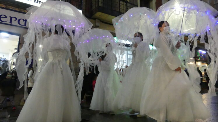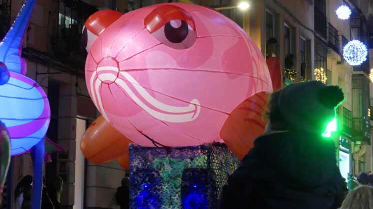 Así, se han dejado ver medusas humanas, peces gigantes de colores, 4 pulpos de grandes dimensiones con sus tentáculos articulados, otros 10 «pulpitos», bailarinas con luces led, sirenas y tritones, una ballena y una tortuga especialmente grandes… e incluso los denominados «piratas carboneros», que se encargaron de repartir el tradicional carbón dulce entre los más pequeños.
