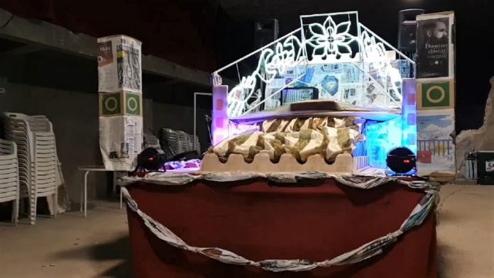 El Ayuntamiento de Alcocer tiene todo preparado para recibir a los Reyes Magos en este pueblo alcarreño. durante los últimos días han fabricado una carroza con materiales en su totalidad reciclados, que proceden del contenedor de basura azul de la localidad.