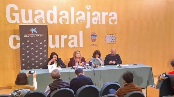 La concejala delegada de Cultura del Ayuntamiento de Guadalajara, Riansares Serrano, y la directora del Área de Negocio de CaixaBank en Guadalajara Ciudad y Cuenca, Noelia Pérez, han presentado este jueves en rueda de prensa el espectáculo Clarinetarium.