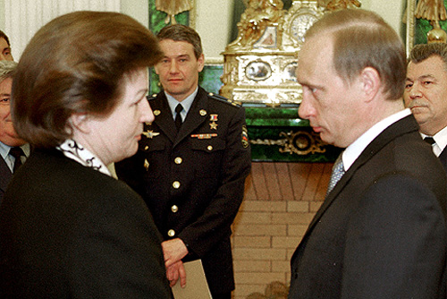 Previamente a su ingreso como cosmonauta, en 1961 ya había ocupado el puesto de secretaria del Komsomol (Unión de Jóvenes Comunistas) y luego se adhirió al Partido Comunista de la Unión Soviética, único legal en su país durante siete décadas. Su padre era oficialmente considerado «héroe de guerra», al morir en un tanque durante la campaña contra Finlandia, en los prolegómenos de la II Guerra Mundial.