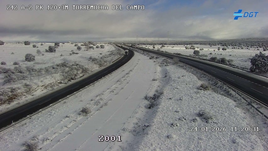Durante la mañana de este 24 de enero de 2026, la DGT advierte que la A-2 es transitable, pero con precaución desde la altura de Garbajosa y hacia el norte.