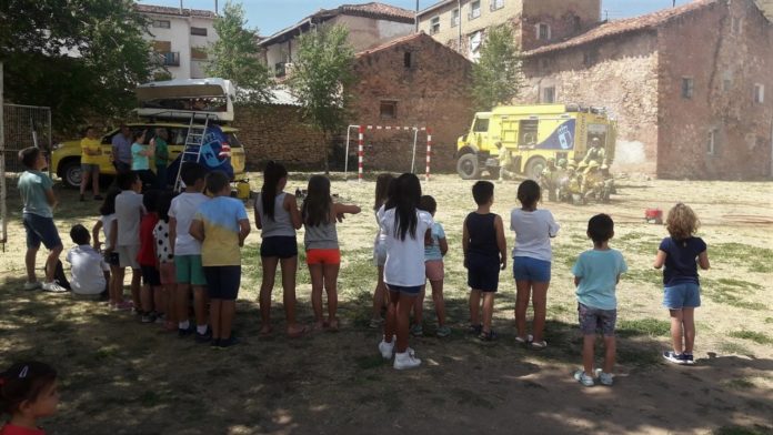Geacam prosigue su labor orientada a divulgar los valores medioambientales, especialmente entre los más jóvenes. El personal perteneciente a la base de Taravilla y un técnico de formación se desplazaron hasta Checa, municipio enclavado en el Parque Natural del Alto Tajo, para dar a conocer cómo funciona el dispositivo de incendios forestales en la provincia de Guadalajara.