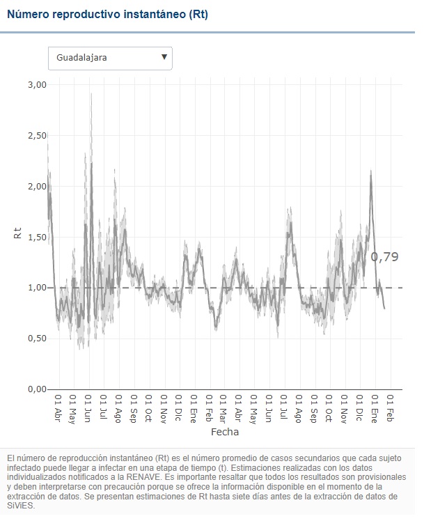 Puestos a buscar motivos para una cierta esperanza frente al COVID, incluso en Guadalajara se pueden encontrar datos que animen al optimismo. Es el caso de lo que técnicamente se conoce como «número reproductivo instantáneo», que es la capacidad de que tiene el virus de trasmitirse.