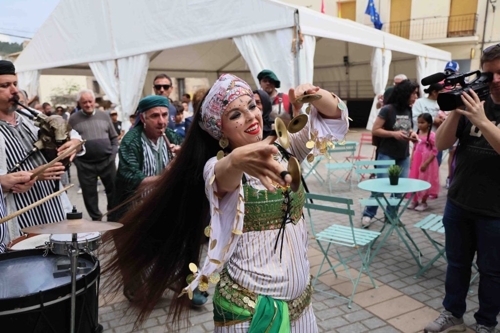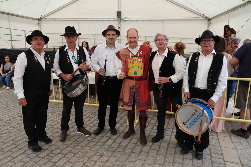 La programación continuó con narraciones sobre la vida militar en la Edad Media, tiro con arco, talleres de escritura con cálamos, ilustración en papel papiro, marcapáginas medievales, juegos de mesa, adivinanzas, animación musical, escenas teatrales y degustaciones populares. Las migas del sábado, acompañadas por Dulzanares Folk, reunieron a vecinos y visitantes en torno a una de las imágenes más costumbristas de la feria. Ya por la tarde, Menu do Cuento Medieval, Bloco Axara Batucada, los comediantes itinerantes, el Baile Retro Satanás con antorchas y espadas de fuego, y la verbena popular con el dúo Salados completaron una jornada intensa, que fue respetada por lluvias y tormentas, a lo largo de todo el fin de semana.