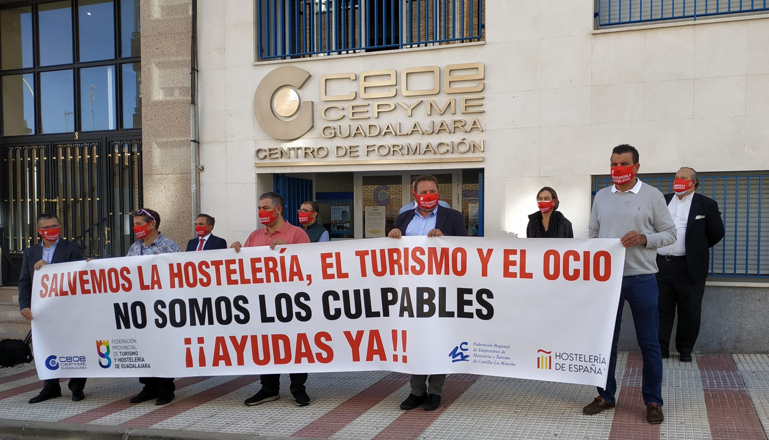 A la misma hora, en Guadalajara una representación del sector, con el apoyo de algunos cargos políticos de la provincia, se han concentrado ante las puertas de la Confederación de Empresarios para poner de relieve, una vez más, la situación «agónica» que atraviesan sus empresas y «rogar» ayudas directas.