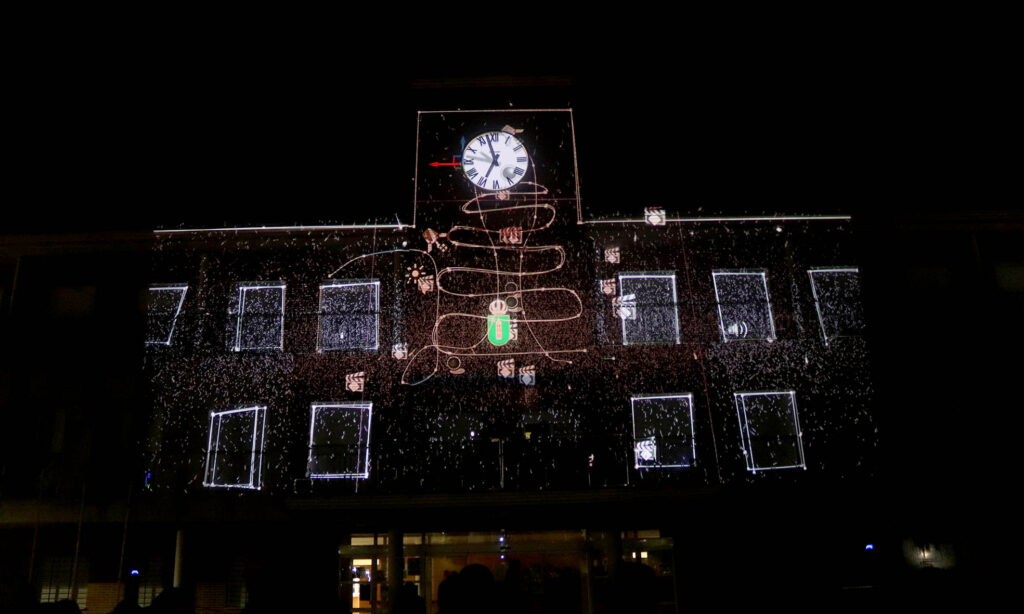 Se proyectó sobre la fachada consistorial un «videomapping» navideño, especialmente dedicado al público infantil, en el que Papa Noel precisaba de la ayuda de niños y niñas para poder encontrar al malvado Krampus, para salvar la Navidad. Santa Claus lo conseguía, y celebraba su triunfo bailando la Macarena, para iniciar a continuación una cuenta atrás desde el 10 hasta el 0. Y al llegar al final, explosión de color: se encendía toda la ornamentación de la plaza, al tiempo que un pequeño castillo de fuegos artificiales iluminaba el cielo de Cabanillas.