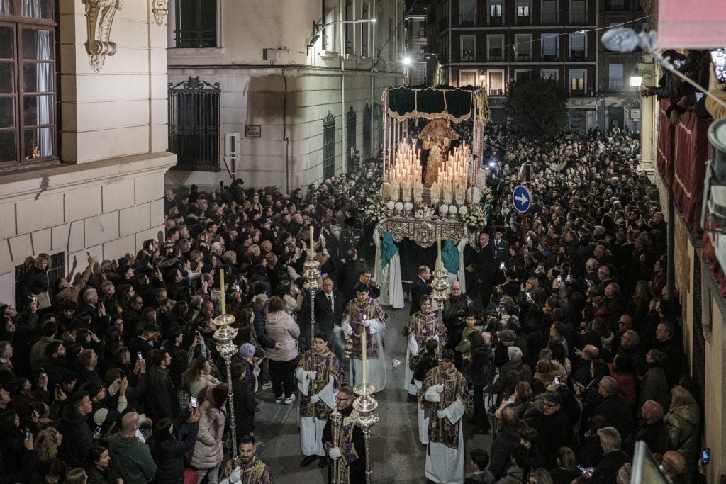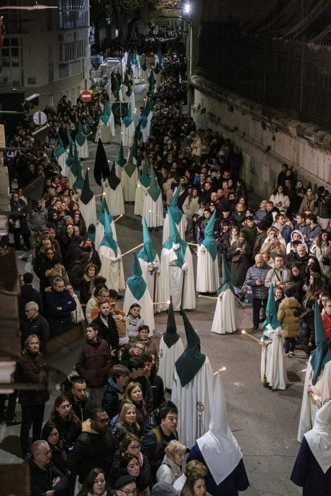 Durante casi cuatro horas, la ciudad dejó de ser lo que es habitualmente. Se convirtió en escenario de una coreografía muy medida: costaleros, música, incienso y un paso avanzando milímetro a milímetro.