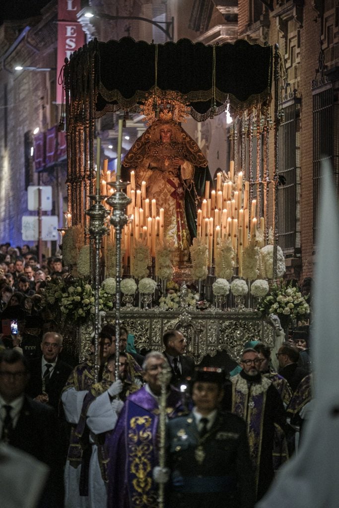 La Virgen de la Macarena recorrió las calles de Guadalajara bajo palio. Más de sesenta personas se coordinaron para que todo funcionara sin margen de error.