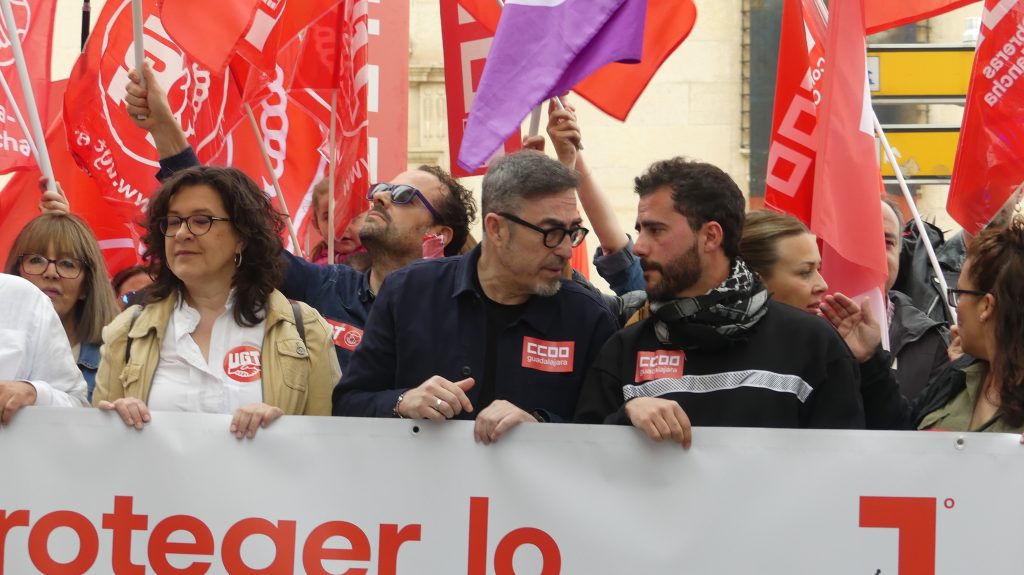 El rito se ha repetido el Primero de Mayo en Guadalajara, con nutrida presencia de cargos políticos (esencialmente socialistas) entre los varios centenares de participantes en la manifestación que tenía por origen el Palacio del Infantado.