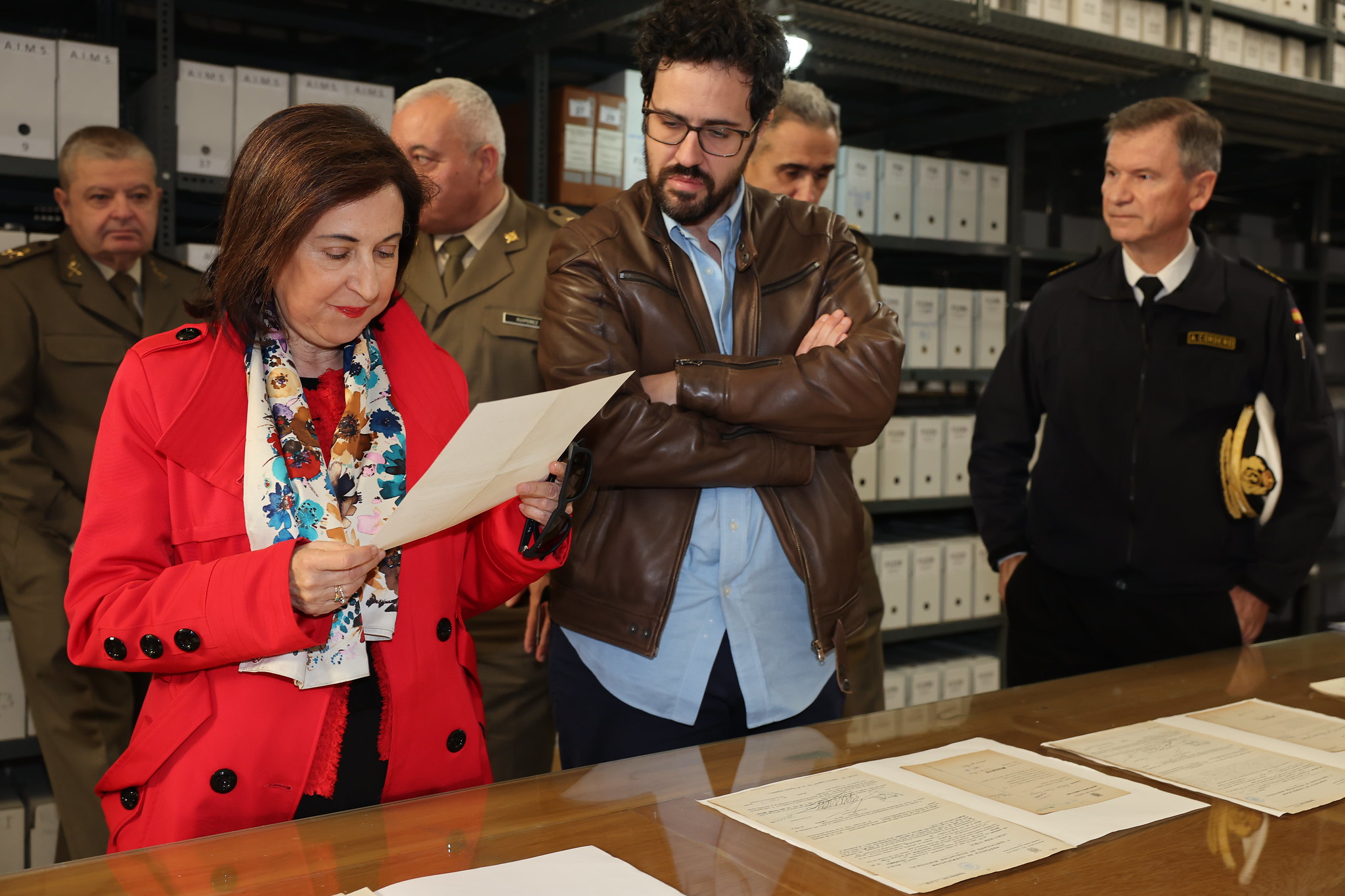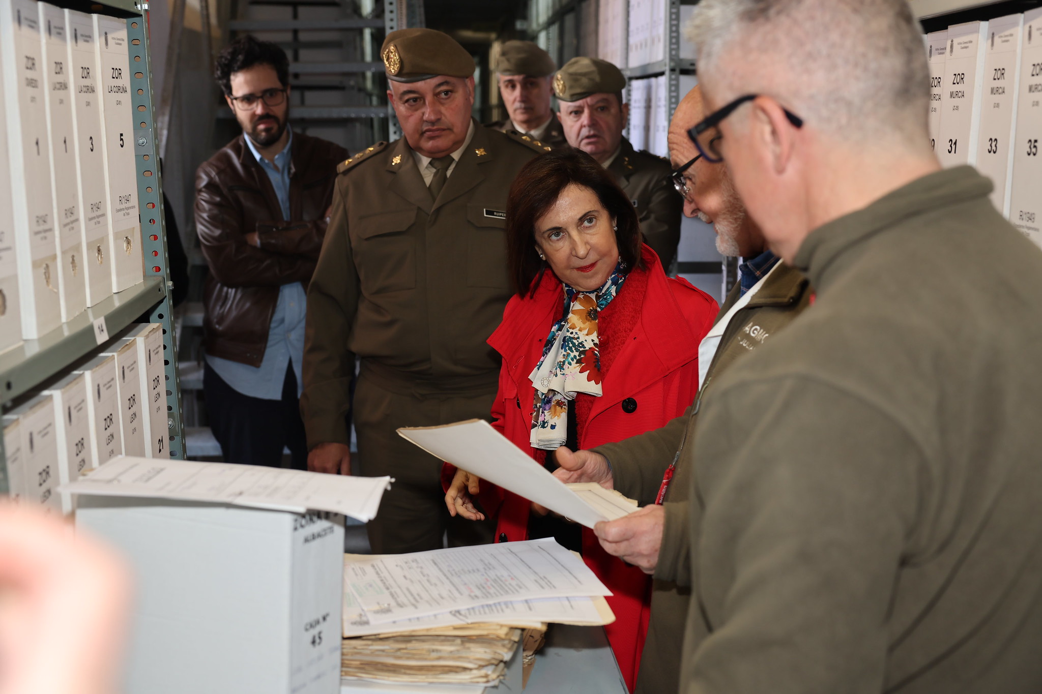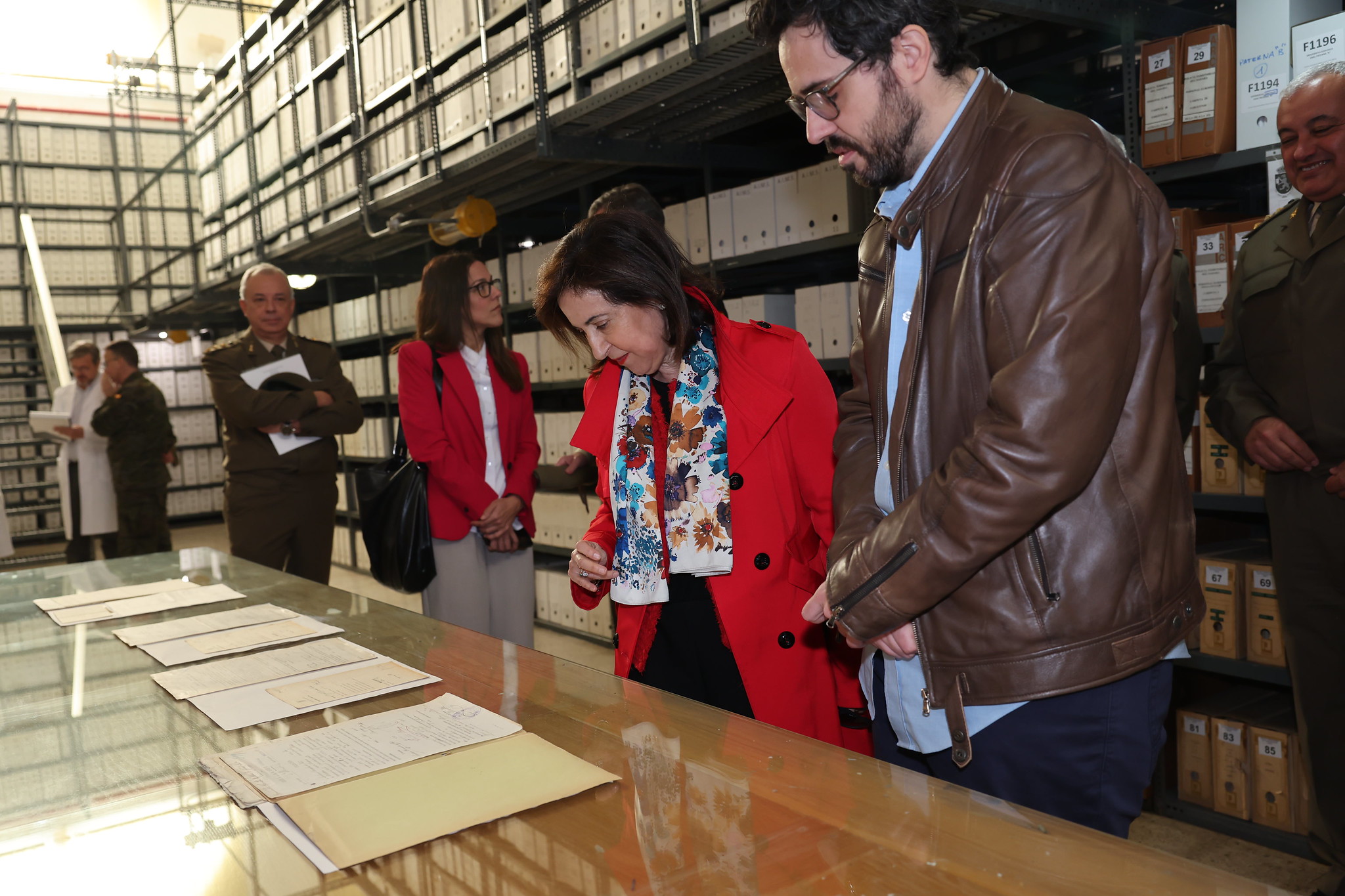 La ministra Robles ha podido conocer de primera mano alguno de los fondos y documentos que se custodian en el archivo, entre ellos expedientes de tropa y también de unidades disciplinarias, así como el archivo de la Comisión Central de Examen de Penas o expedientes disciplinarios del Consejo Supremo de Justicia Militar, entre otros.