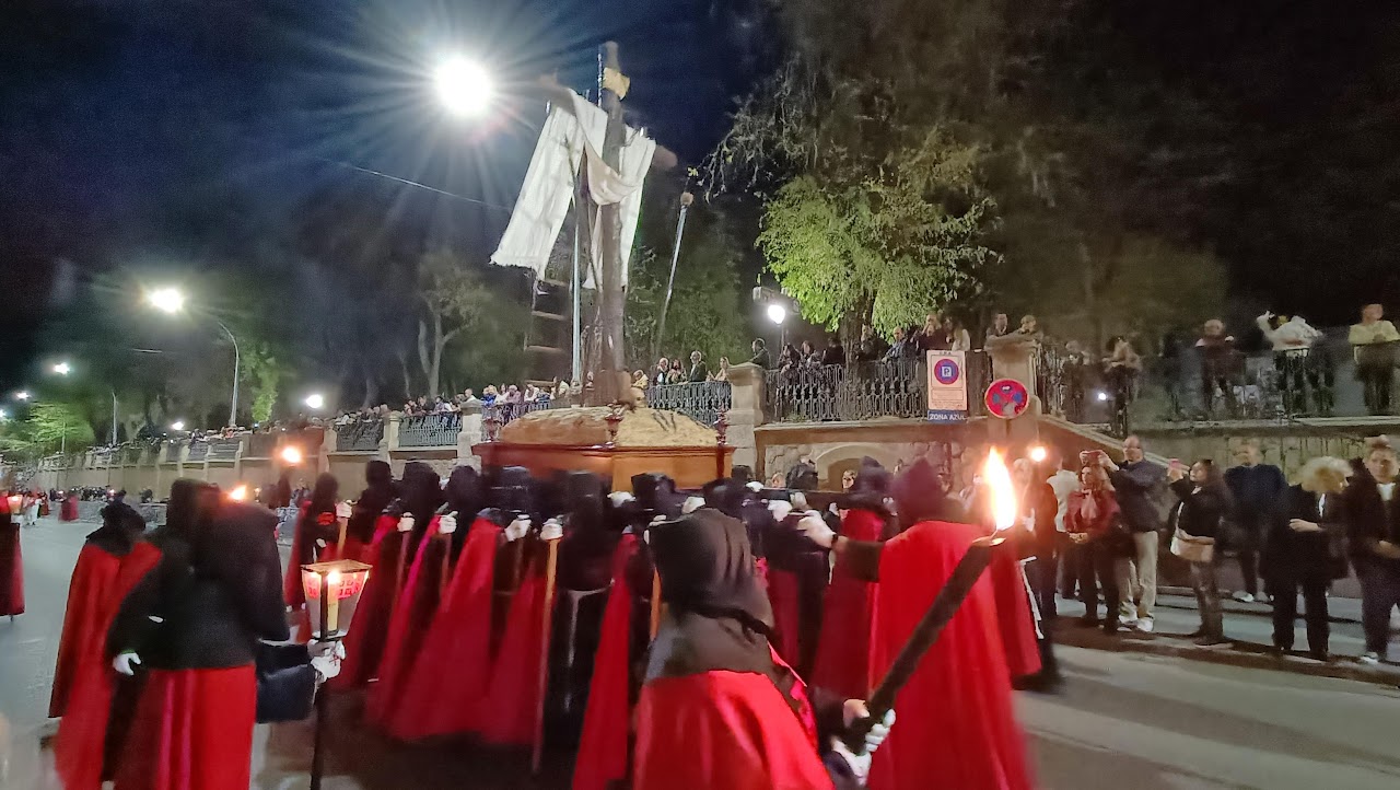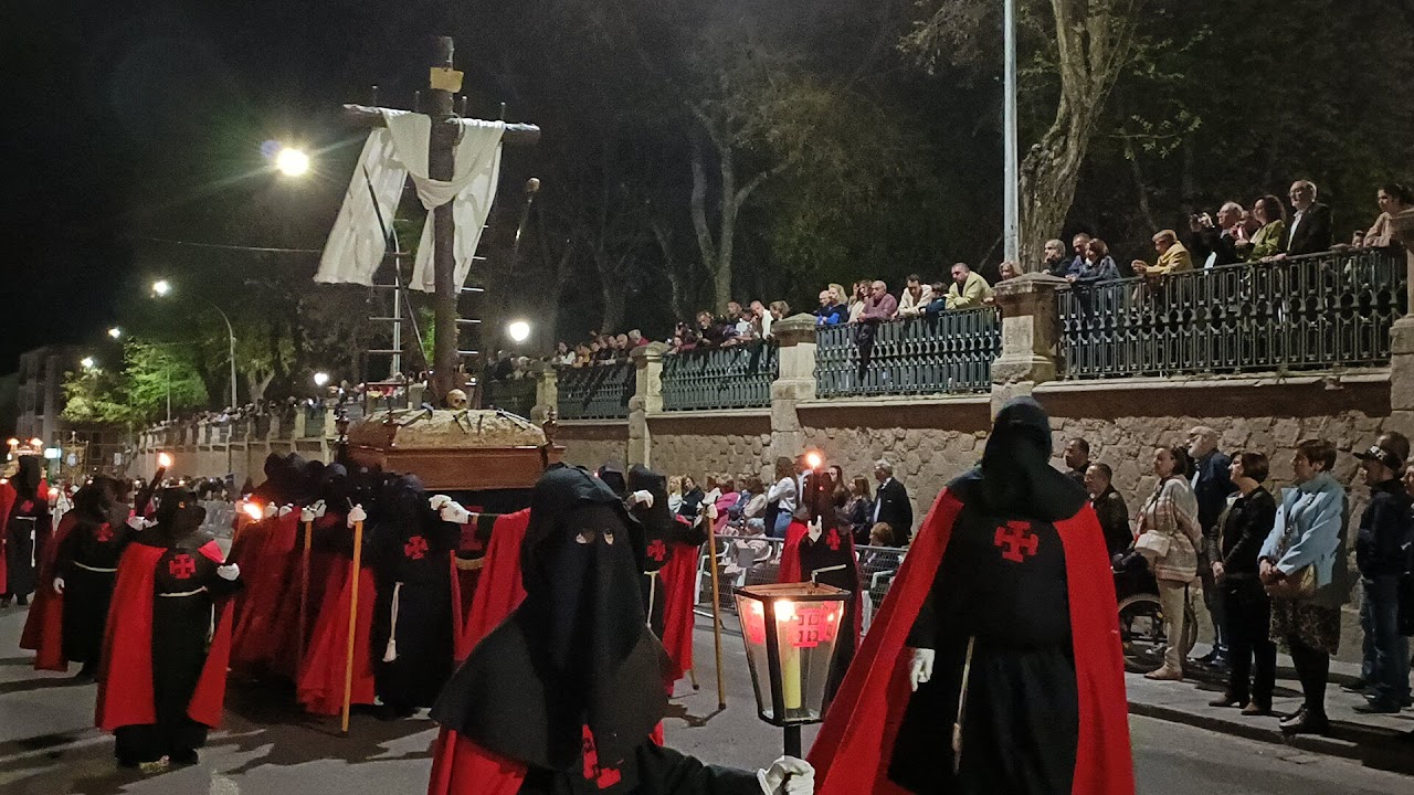 20.30 / Cofradía del Cristo Yacente del Santo Sepulcro, con su imagen titular y la Cruz Desnuda de Jerusalén. Acompañada por el Grupo de Dulzaineros Mahurotos.
