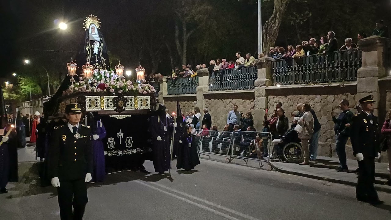20.45 / Hermandad de Ntra. Sra. de la Soledad con su imagen titular y el Cristo del Consuelo. Acompañada de la Banda Sinfónica Complutense de Alcalá de Henares.