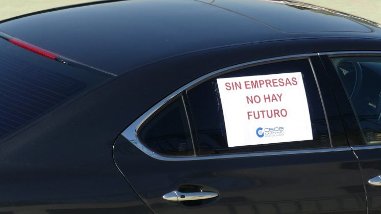 Cumplidos todos los prolegómenos, los empresarios que participaban en la protesta y sus acompañantes enfilaron hacia el centro de la ciudad. Para regular el tráfico se contaba con numerosa presencia de la Policía Local. Aun así, algún «infiltrado» se llegó a colar, como el autobús de la línea circular, que sorteó a los coches como mejor pudo para salir del paso y seguir su ruta.
