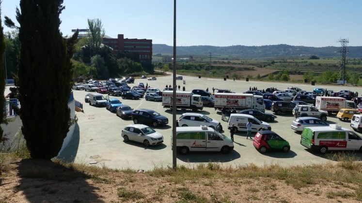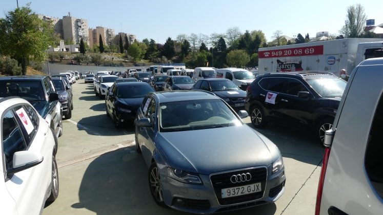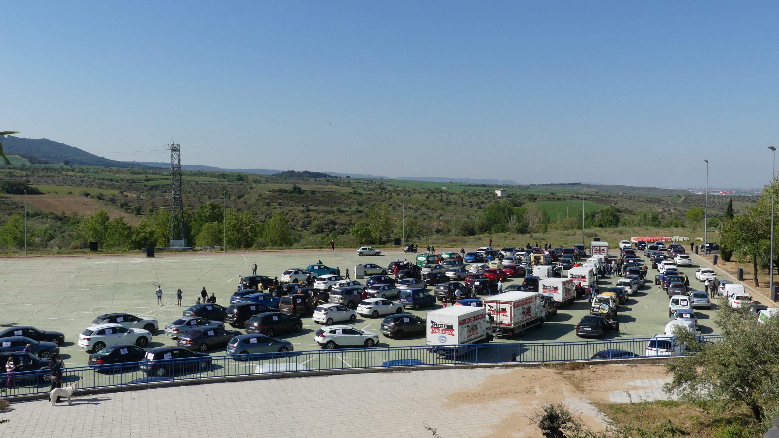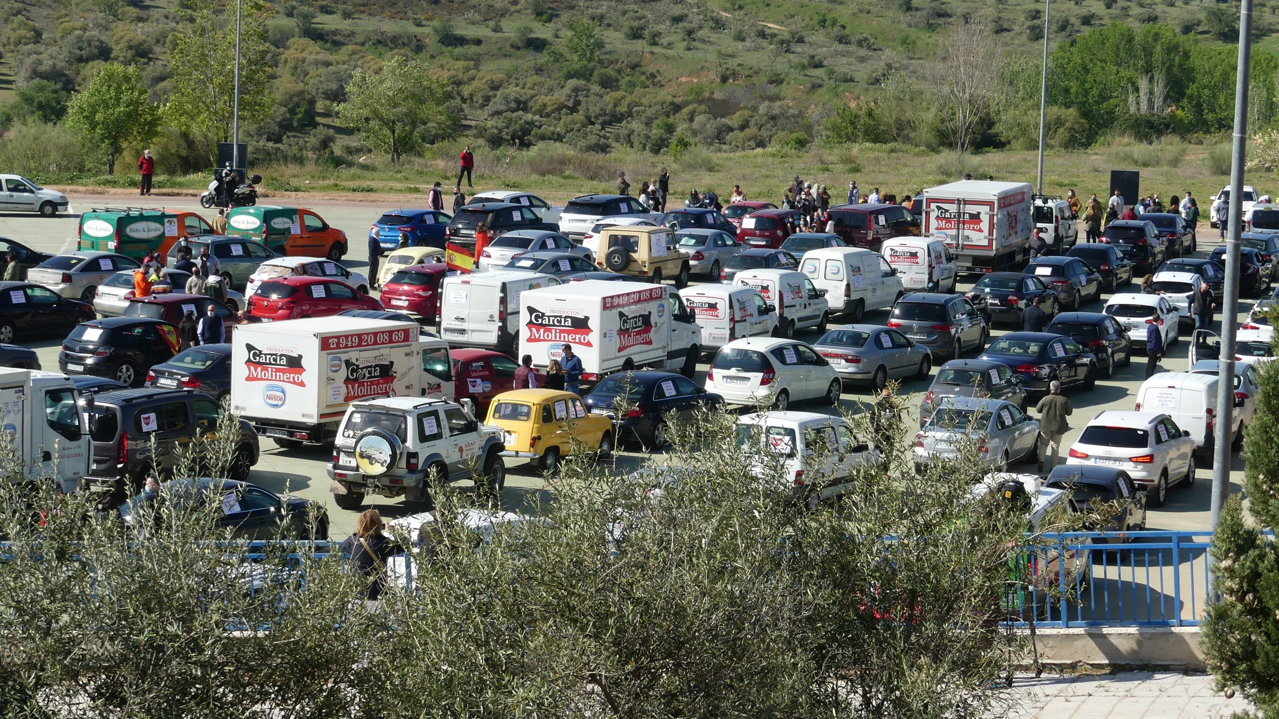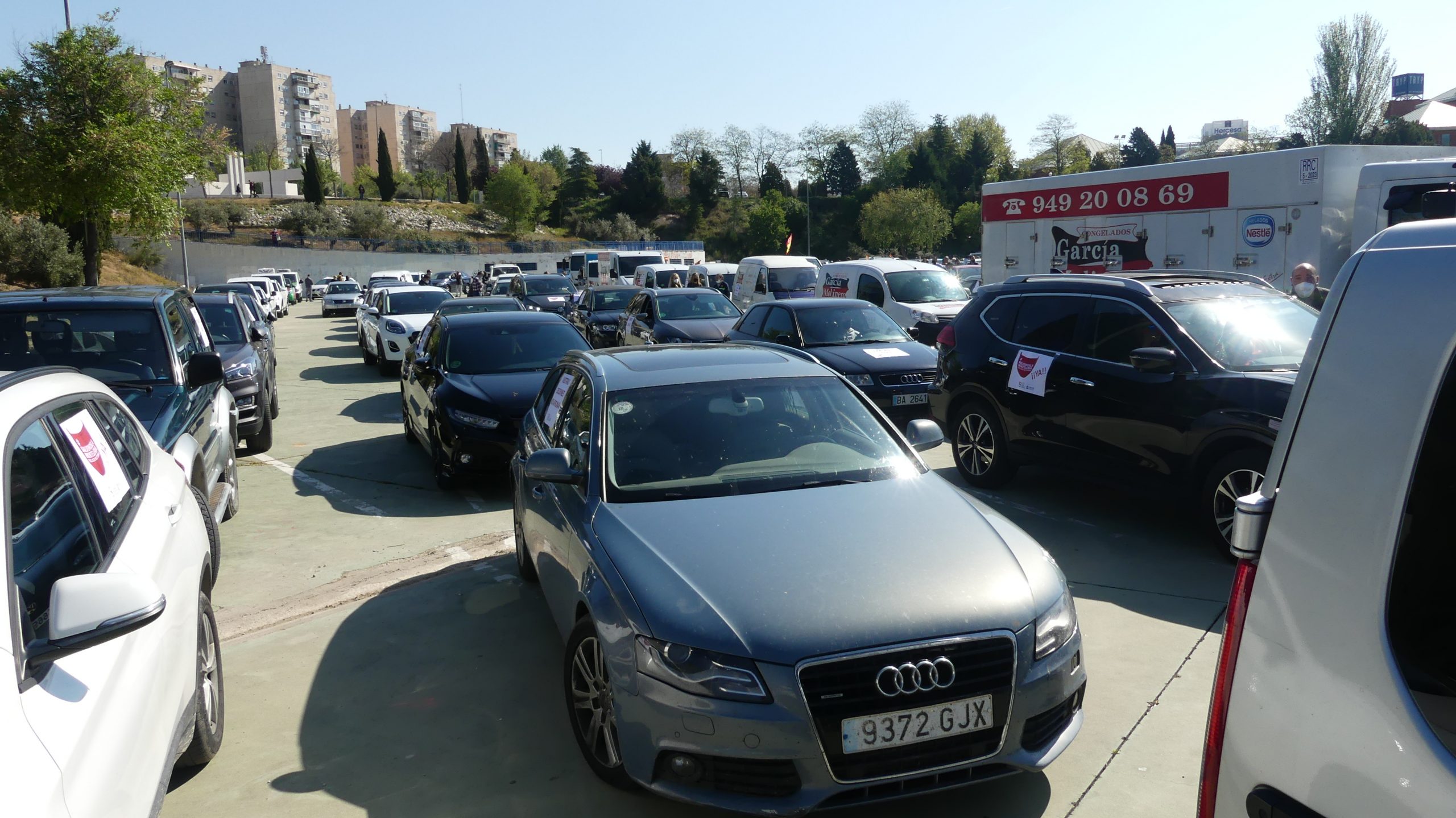 Parecían pocos desde la distancia, pero los vehículos reunidos en la explanada del Ferial este domingo, 18 de abril de 2021, tardaron alrededor de 15 minutos en desalojar, incluso a buen paso, el recinto. Su destino eran las calles de Guadalajara. Por allí discurrieron parte de la mañana. Al mediodía, por ejemplo, la comitiva enfilaba ya el Paseo de las Cruces, entre ocasionales aplausos de los viandantes.